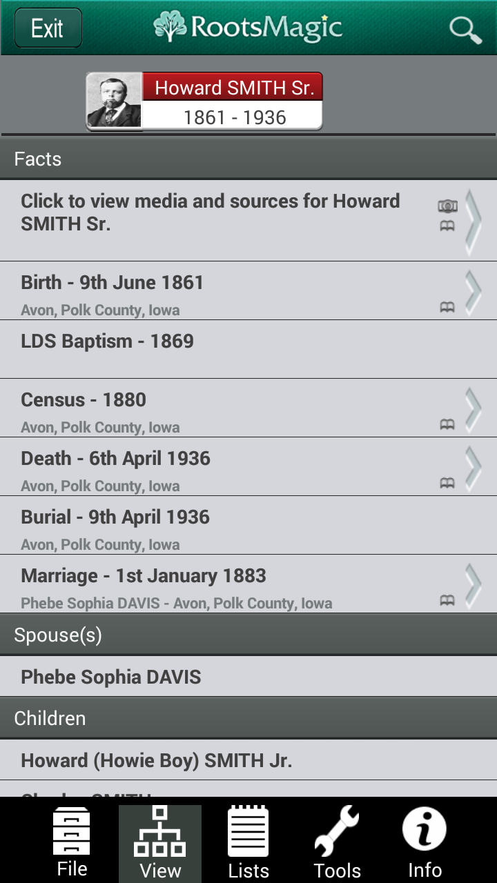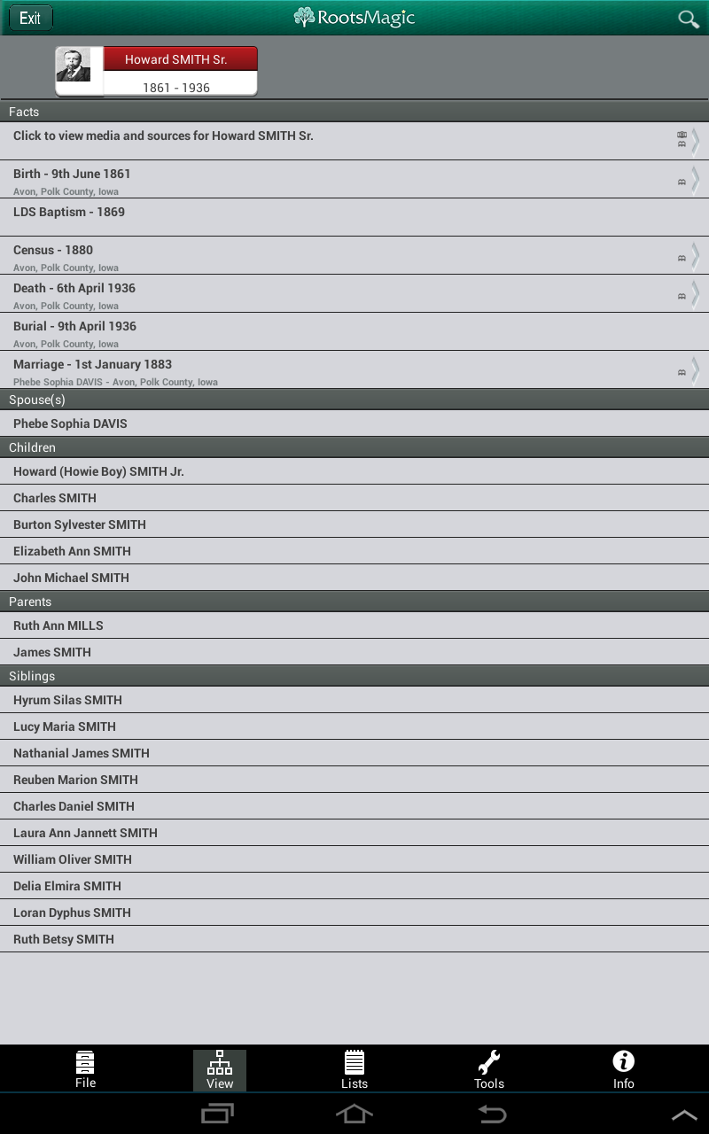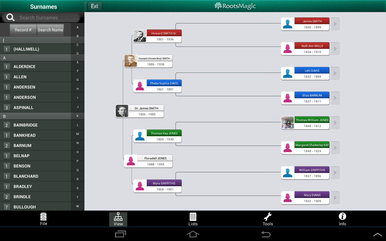 | 09:24, 24. Nov. 2014 | RootsMagic App Phone FamilyView.png (Datei) | 247 KB | {{Information |Beschreibung = RootsMagic App Familiensicht auf einem Android Smartphone |Quelle = http://www.amazon.com/RootsMagic/dp/B00I8QSI0M |Urheber = RootsMagic, Inc. |Datum = erstellt am 24.11.2014 |Scans = |Genehmigung = {{OTRS-Link|201406021000 | 1 | |
