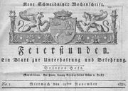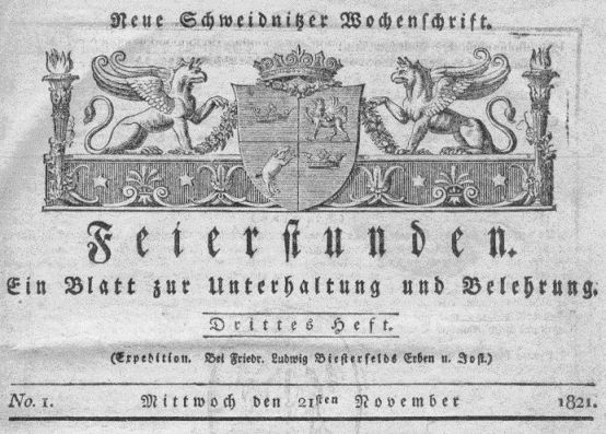 | 10:18, 4. Mär. 2007 | Schweidnitz feierstunden.jpg (Datei) | 60 KB | *Beschreibung: Titel Zeitung "Feierstunden" (Schweidnitz) *Quelle: Fotot vom Original *Fotograf oder Zeichner: VZimmer *Andere Version: - *Lizenzstatus: PD {{PD-User|VZimmer}} | 1 | |