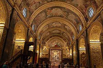 Der Kalksteinbau aus rmpfindlichen maltesischem Kalkstein wurde in den Jahren 1573 bis 1577 als Haupt- und Konventkirche des Johanniterordens erbaut und besitzt 12 Apsiden, die jeweils auf spezifische Art prunkvoll verziert sind. Auf dem Boden der Kirche erstrecken sich fast 400 Grabplatten (Momento Mori) führender verstorbener Ritter des Ordens, die Marmorplatten tragen dazu entspechend Inschriften und Bilder. In der Krypta findet man darüber hinaus die Sarkophage der meisten Großmeister.