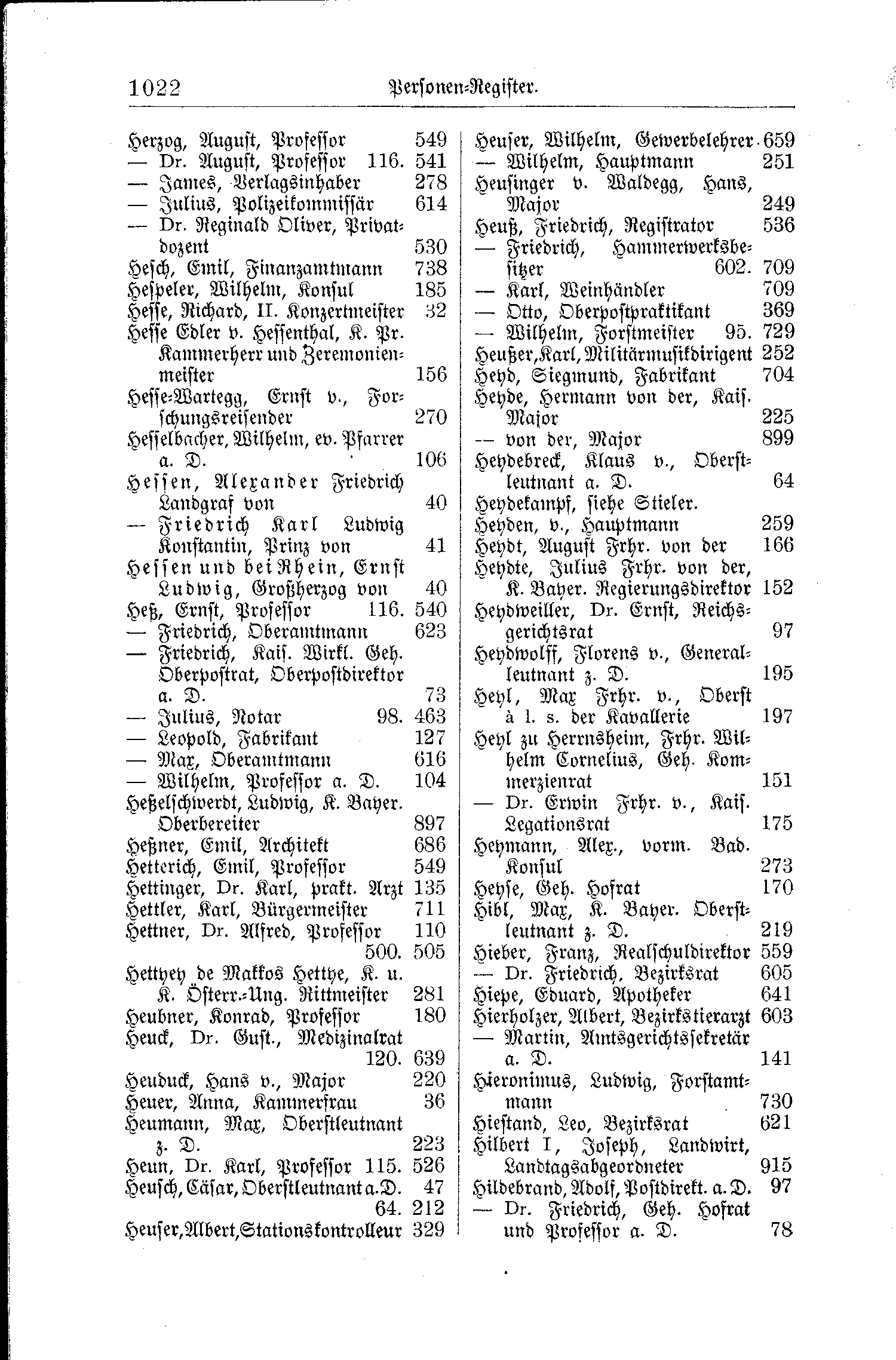 | -- Friedrich, Kais. wirkl. Geh. Oberpostrat, Oberpostdirektor a. D. | 73 | Heydte, Julius Frhr. von der, K. Bayer. Regierungsdirektor | 152 |