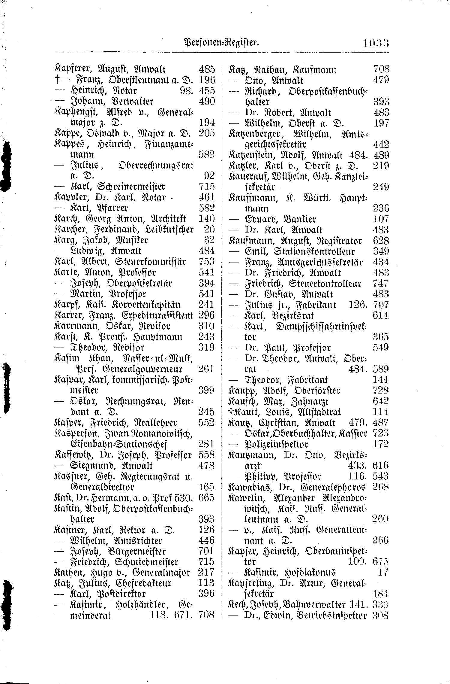 Kappe, Oswald v., Major a. D. 205 Katzenberger, Wilhelm, Amtsgerichtssekretär 442