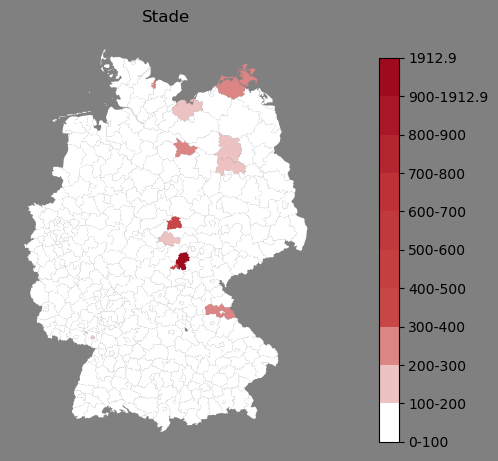 Absolute Verteilung des Namens Stade (1890)Direkt zur Karte Absolute Verteilung des Namens "Stade" um 1890 im damaligen Deutschen Reich Sie können die Karte innerhalb des Fensters zoomen und verschieben. |