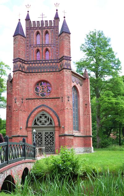 - Die katholische Kirche liegt auf einer künstlichen Insel im Schlosspark.