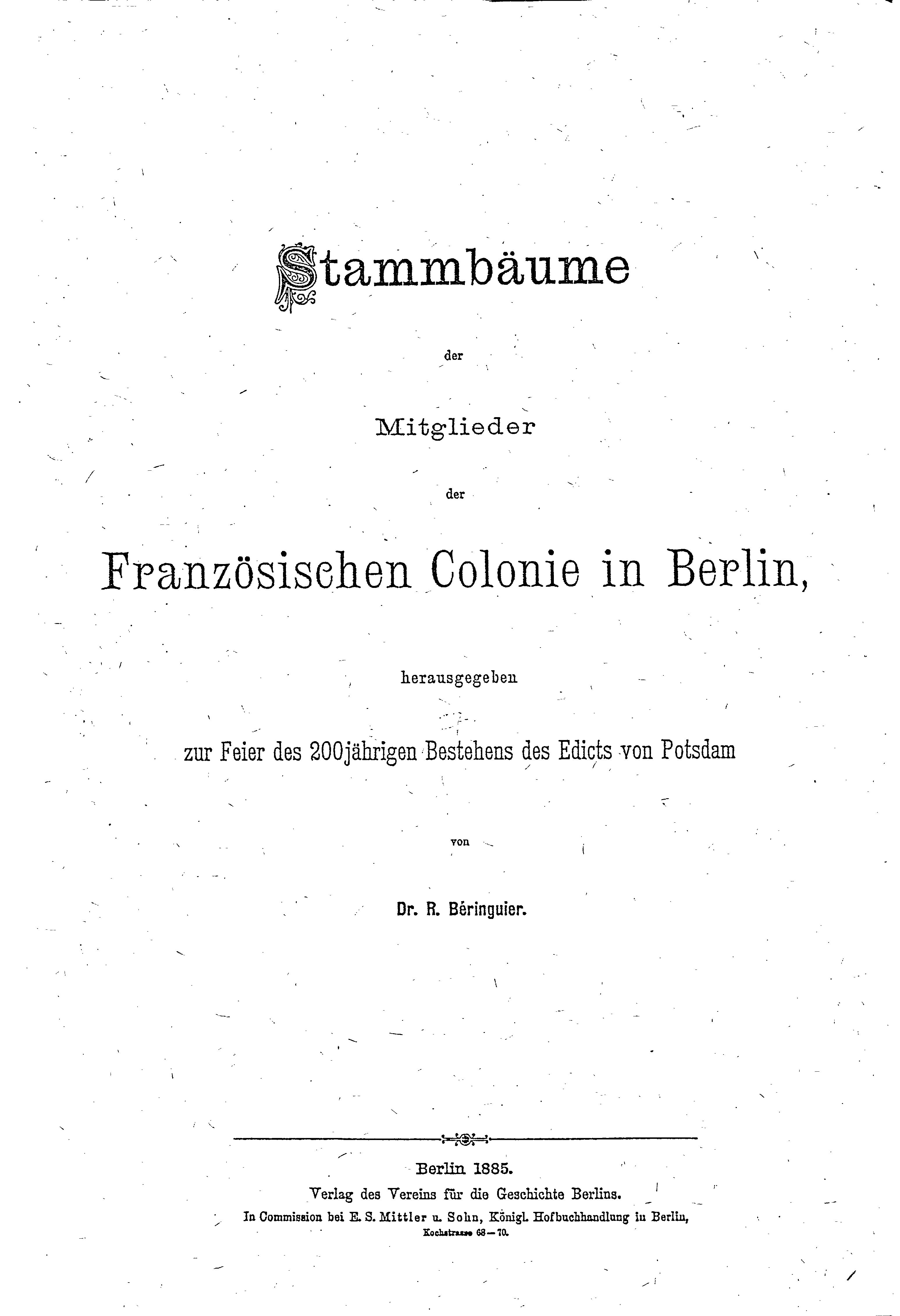 Stammbäume der Mitglieder der Französischen Colonie in Berlin/Titel 1885