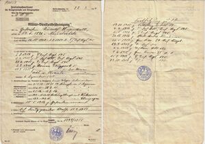 - Angaben über bereits geleisteten Militärdienst unter Angabe des Regiments