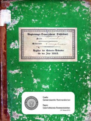 <tab head="top" class="wikitable sortable" width="1000"> Nr. Datum Name, Vorname(n) Geburtsdatum Geburtsort Vater Mutter 1 05.01.1842 Schmitz, Johann Adolph 05.01.1842 Uekinghoven Schmitz, Peter Schäfer, Cäcilia 2 07.01.1842 Barrawasser, Anna Margaretha 05.01.1842 Widdeshoven Barrawasser, Jacob Hilgers, Margaretha 3 08.01.1842 Pesch, Christian 07.01.1842 Ramrath Pesch, Andreas Jansen, Ursula 4 14.01.1842 Vetten, Anna Sybilla 14.01.1842 Widdeshoven Vetten, Johann Hansen, Anna Maria 5 24.01.1842 Limbach, Maria Theresia 23.01.1842 Deelen Limbach, Anton Schumacher, Odilia 6 24.01.1842 Schreiner, Agnes 23.01.1842 Oekoven Schreiner, Heinrich Schmitz, Eva Maria 7 24.01.1842 Schwarz, Barbara 24.01.1842 Widdeshoven Schwarz, Gottfried Halffen, Elisabeth 8 27.01.1842 Gilles, Agnes 27.01.1842 Widdeshoven Gilles, Peter Schmitz, Anna Catharina 9 28.01.1842 Lipp, Stephan 27.01.1842 Ramrath Lipp, Peter Cöllner, Anna Christina 10 29.01.1842 Schmitz, Elisabeth 28.01.1842 Ramrath Schmitz, Heinrich Hüsch, Anna Gertud 11 01.02.1842 van Caster, Anna Maria 01.02.1842 Ramrath van Caster, Peter Pesch, Elisabeth 12 04.02.1842 Rund, Anna Sophia 04.02.1842 Ramrath Rund, Christian Joseph Hambloch, Catharina 13 06.02.1842 Nippen, Adelheid 05.02.1842 Widdeshoven Nippen, Werner Krautmann, Maria Catharina 14 09.02.1842 Beyen, Anna Gertrud 09.02.1842 Broich Beien, Johann Hubert Hamacher, Maria Sybilla 15 14.02.1842 Effertz, Maria Catharina 13.02.1842 Widdeshoven Effertz, Heinrich Aufmwasser, Sophia 16 22.02.1842 Hintzen, Anna Maria 21.02.1842 Ramrath Hintzen, Stephan Cremer, Agnes 17 25.02.1842 Over, Peter 24.02.1842 Oekoven Over, Peter Herkenrath, Maria Christina 18 06.03.1842 Beyen, Gertrud 05.03.1842 Broich Beyen, Caspar Korfmacher, Elisabeth 19 07.03.1842 Dolffen, Heinrich 05.03.1842 Ramrath Dolffen, Adam Angermund, Anna Maria 20 09.03.1842 Engels, Friedrich Wilhelm 09.03.1842 Widdeshoven Engels, Wilhelm Capellen, Catharina 21 18.03.1842 Düxmann, Johann Heinrich 18.03.1842 Widdeshoven Düxmann, Adam Offer, Eva Maria 22 21.03.1842 Durst, Paul 20.03.1842 Deelen Durst, Johann Dickers, Barbara 23 21.03.1842 Nippen, Catharina 21.03.1842 Ramrath Nippen, Friedrich Junkers, Anna Maria 24 23.03.1842 Conrath, Adelheid 22.03.1842 Widdeshoven Conrath, Heinrich Strauch, Elisabeth 25 03.04.1842 Krautmann, Gertrud 02.04.1842 Widdeshoven Krautmann, Johann Nix, Caecilia 26 11.04.1842 Lemm, Robert Gottfried 11.04.1842 Oekoven Lemm, Anton Vogel, Maria Sophia 27 12.04.1842 Conradi, Heinrich 12.04.1842 Ramrath Conradi, Anton Wistorf, Margaretha 28 13.04.1842 Kratz, Anna Catharina 13.04.1842 Evinghoven Kratz, Heinrich Joseph Leufgen, Anna Gertrud 29 14.04.1842 Berisch, Gerhard 13.04.1842 Ramrath Berisch, Gottfried Patten, Anna Maria 30 18.04.1842 Hackhausen, Franz Wilhelm 16.04.1842 Oekoven Hackhausen, Heinrich Herkenrath, Adelheid 31 19.04.1842 Theis, Peter Joseph 18.04.1842 Widdeshoven Theis, Heinrich Schmitz, Anna Maria 32 22.04.1842 Schmitz, Engelbert 22.04.1842 Ramrath Schmitz, Reiner Winands, Gertrud 33 23.04.1842 Schmitz, Johann Heinrich 23.04.1842 Ramrath Schmitz, Adam Wistorf, Maria Catharina 34 23.04.1842 Hamacher, Hermann 23.04.1842 Widdeshoven Hamacher, Wilfried Coenen, Anna Sophia 35 27.04.1842 Pesch, Odilia 26.04.1842 Evinghoven Pesch, Caspar Joseph Wirtz, Maria Sibilla 36 06.05.1842 Monday, Anna Catharina 06.05.1842 Broich Monday, Everhard Capellen, Anna Sophia 37 13.05.1842 Schiffer, Maria Catharina 13.05.1842 Widdeshoven Schiffer, Adam Nippen, Adelheid 38 23.05.1842 Rixen, Anna Catharina 23.05.1842 Uekinghoven Rixen, Mathias Wistorf, Maria Christina 39 30.05.1842 Krings, Anna Catharina 29.05.1842 Broich Krings, Johann Nix, Anna Catharina 40 08.06.1842 Beuser, Paul Hubert 07.06.1842 Deelen Beuser, Gerhard Nellen, Maria Margaretha 41 10.06.1842 Schmitz, Wilhelm 09.06.1842 Widdeshoven Schmitz, Anton Schmitz, Anna Margaretha 42 18.06.1842 Pohl, Werner 18.06.1842 Deelen Pohl, Peter Mohr, Agnes 43 24.06.1842 Bodewich, Christian 23.06.1842 Widdeshoven Bodewich, Johann Kluth, Christina 44 28.06.1842 Aretz, Johann 26.06.1842 Ramrath Aretz, Bernard Brosch, Maria Cäcilia 45 30.06.1842 Breuer, Agnes 30.06.1842 Evinghoven Breuer, Ferdinand Koppen, Anna Christina 46 30.06.1842 Klefisch, Anna Maria 30.06.1842 Ramrath Klefisch, Engelbert Schroeder, Anna 47 02.07.1842 Piehl, Christina 02.07.1842 Deelen Piehl, Gertrud 48 08.07.1842 Zimmermann, Peter 07.07.1842 Evinghoven Zimmermann, Heinrich Holz, Elisabeth 49 09.07.1842 Boes, Hubert Otto 08.07.1842 Uekinghoven Boes, Johann Nicolas Mengwasser, Anna Gertrud 50 14.07.1842 Geuenich, Catharina 14.07.1842 Evinghoven Geuenich, Mathias Reinartz, Margaretha 51 15.07.1842 Oepen, Henriette Elisabeth 14.07.1842 Widdeshoven Pintgen, Johann Oepen, Catharina 52 23.07.1842 Wolff, Francisca Henrietta 22.07.1842 Ramrath Wolff, Philipp Joseph Schumacher, Margaretha 53 30.07.1842 Herkenrath, Anna Margaretha 29.07.1842 Oekoven Herkenrath, Joseph Gilles, Anna Catharina 54 06.08.1842 Schumacher, Christian 06.08.1842 Deelen Schumacher, Heinrich Schotten, Anna Gertrud 55 13.08.1842 Mai, Johann Hubert 12.08.1842 Ramrath Mai, Michael Wistorff, Maria Helena 56 16.08.1842 Hochhausen, Heinrich Hubert 16.08.1842 Evinghoven Hochhausen, Johann Paar, Catharina 57 20.08.1842 Thum, Michael 19.08.1842 Evinghoven Thum, Michael Pitzler, Magdalena 58 26.08.1842 Schmitz, Margaretha 26.08.1842 Ramrath Schmitz, Caspar Winter, Magdalena 59 01.09.1842 von Lennep, Maria Agnes 01.09.1842 Ramrath von Lennep, Christian Zimmermann, Gertrud 60 02.09.1842 Kluth, Anna Maria Gertrud 02.09.1842 Ramrath Kluth, Engelbert Glasmacher, Maria Catharina 61 03.09.1842 Haas, Johann Heinrich 03.09.1842 Uekinghoven Haas, Johann Koppen, Anna Catharina 62 05.09.1842 Theis, Franz Wilhelm 04.09.1842 Ramrath Theis, Johann Wilhelm Mühlfarth, Elisabeth 63 06.09.1842 Hahn, Elisabeth 05.09.1842 Ramrath Hahn, Mathias Hölzgen, Gertrud 64 12.09.1842 Krosch, Georg 11.09.1842 Ramrath Krosch, Johann Sommer, Cäcilia 65 16.09.1842 Barrawasser, Gertraud 15.09.18