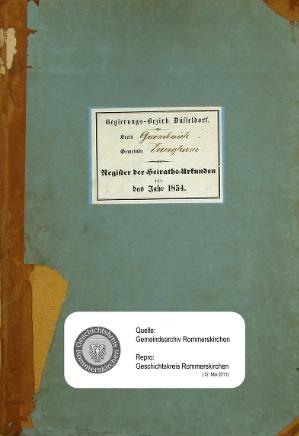 4 30.05.1854 Wimmer, Anton Friedrich 33 Jahre Kaiserswerth Nagelschmied Schiffer, Gertrud 37 Jahre Widdeshoven ohne Gewerbe