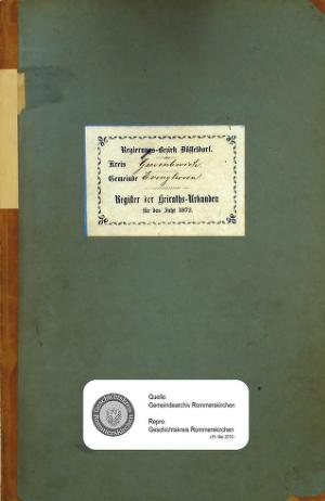 18 10.10.1872 Röckerath, Wilhelm 28 Jahre Deelen Ackerknecht Ripphahn, Maria Katharina 25 Jahre Butzheim Hausarbeiterin