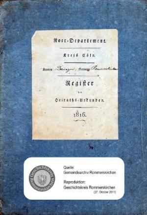 Standesamt Rommerskirchen, Heiratsregister 1816