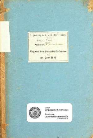Standesamt Rommerskirchen, Heiratsregister 1852