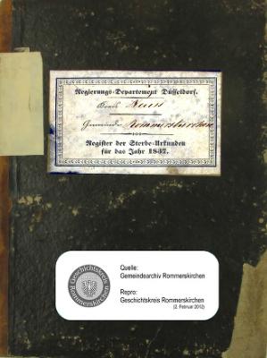 Auszug aus dem Rommerskirchener Sterberegister von 1837