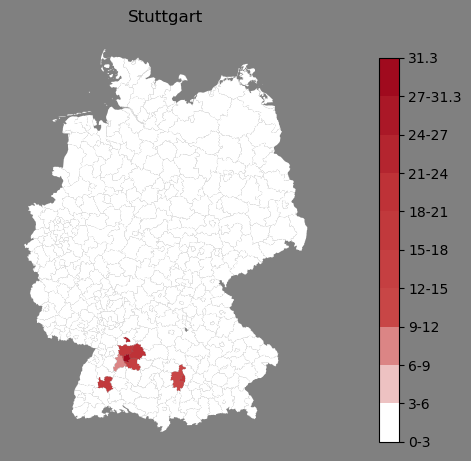 Absolute Verteilung des Namens Stuttgart (1890)Direkt zur Karte Absolute Verteilung des Namens "Stuttgart" um 1890 im damaligen Deutschen Reich Sie können die Karte innerhalb des Fensters zoomen und verschieben. |
