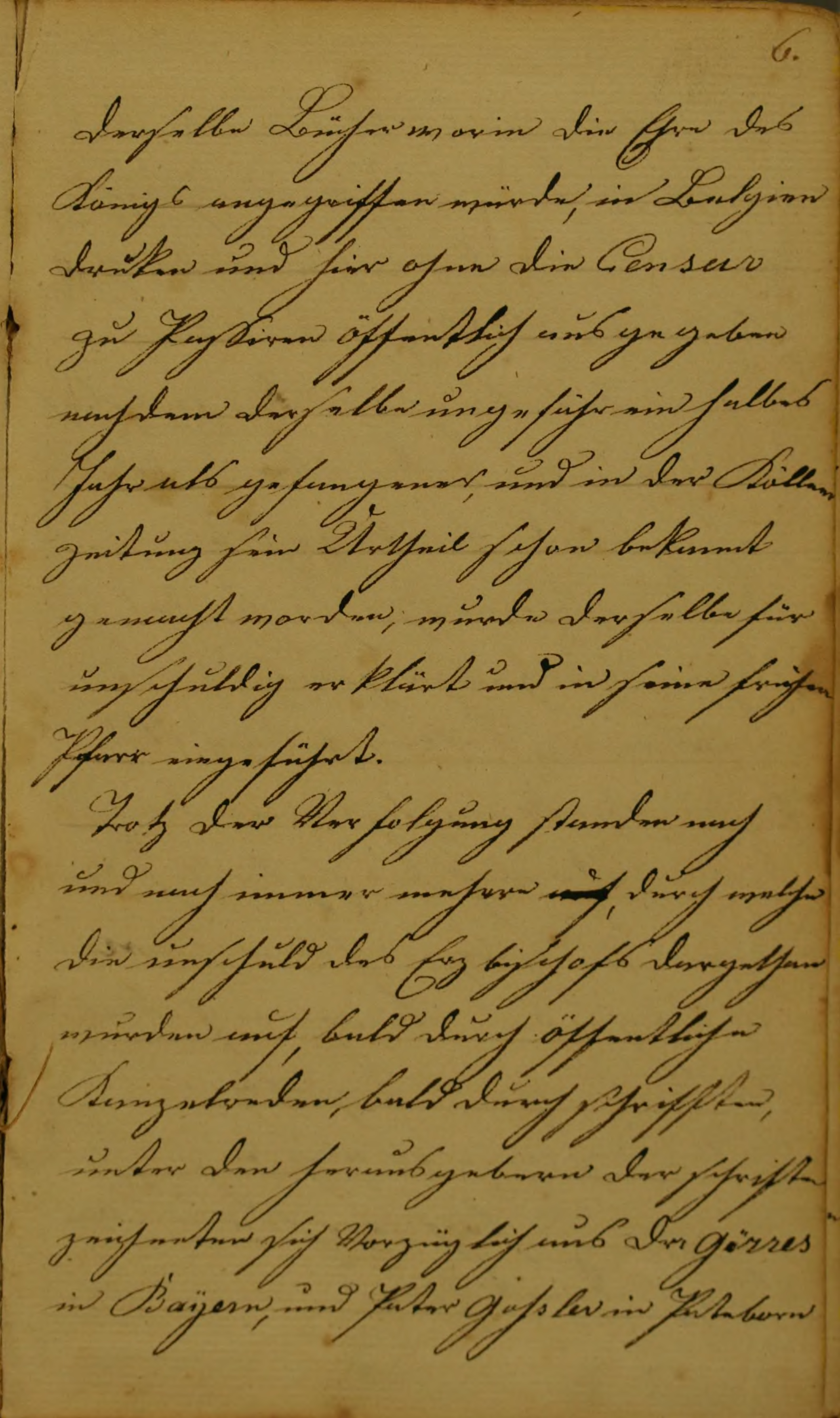 derselbe Bücher worin die Ehre des Königs angegriffen würde, in Belgien druken und hier ohne die Censur zu Passiren öffentlich ausgegeben nachdem derselbe ungefähr ein halbes Jahr als gefangener, und in der Köllner zeitung sein Urtheil schon bekannt gemacht worden, wurde derselbe für unschuldig erklärt und in seine früher(e) Pfarr eingeführt.