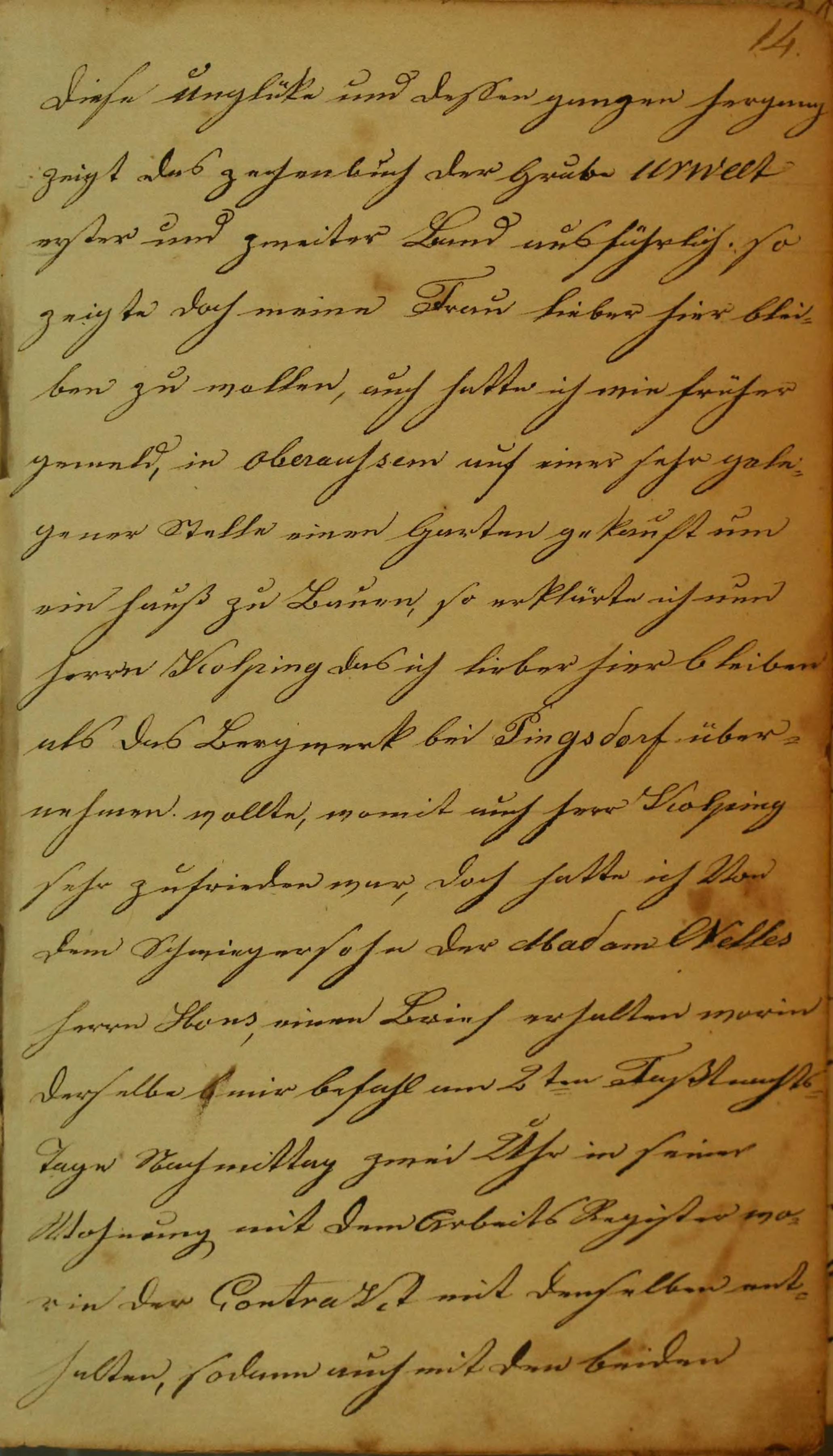 diese Unglüke und dessen ganzen hergang zeigt das zechenbuch der Grube URWELT erster und zweiter Band ausführlich. So zeigte doch meinn Frau lieber hier bleiben zu wollen, auch hatte ich wie früher gemeld, in Oberaussem auf einer sehr gelegener Stelle einen Garten gekauft um ein hauß zu Bauen, so erklärte ich nun herrn Kolping das ich lieber hier bleiben als das Bergwerk bei Pingsdorf übernehmen wollte, womit auch herr Kolping sehr zufrieden war, doch hatte ich Von dem Schwiegersohn der Madam Nelles herrn Hons, einen Brief erhalten worin derselbe mir befahl am 2ten Faßtnachts-Tage Nachmittag zwei Uhr in seiner Wohnung mit dem Arbeits Register worin der Contrakt mit demselben enthalten, sodann auch mit den beiden