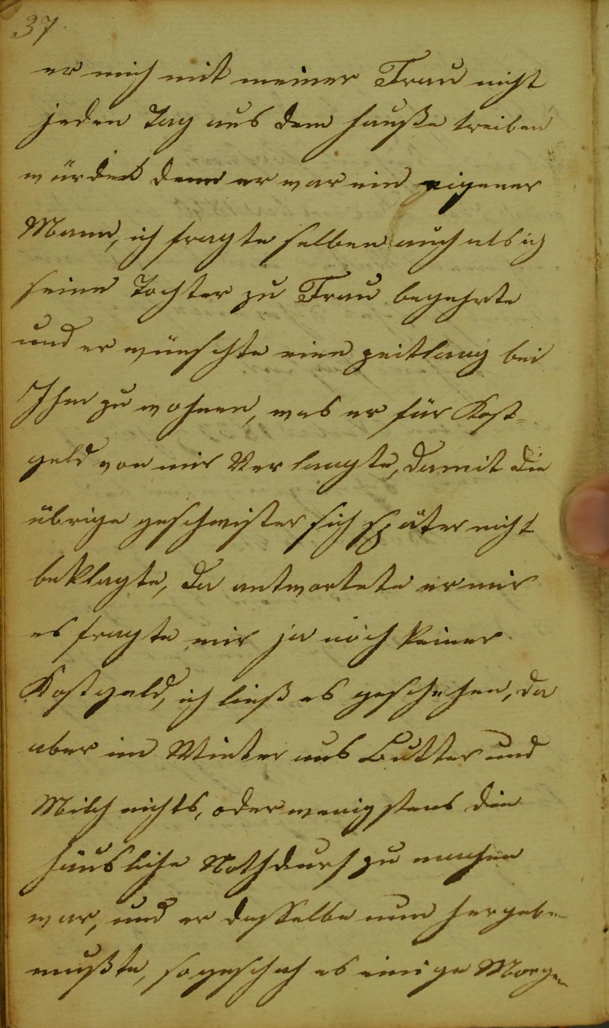 er mich mit meiner Frau nicht jeden Tag aus dem Hauße treiben würden denn er war ein eigener Mann, ich fragte selben auch als ich seine Tochter zu Frau begehrte und er wünschte eine zeitlang bei Ihm zu wohnen, was er für Kostgeld von mir Verlangte, damit die übrige geschwister sich später nicht beklagte, da antwortete er mir es fragte mir ja noch keiner Kostgeld, ich ließ es geschehen, da aber im Winter aus Butter und Milch nichts, oder wenigstens die häusliche Nothdurf zu machen war, und er dasselbe nun hergeben mußte, so geschah es einige Morgen