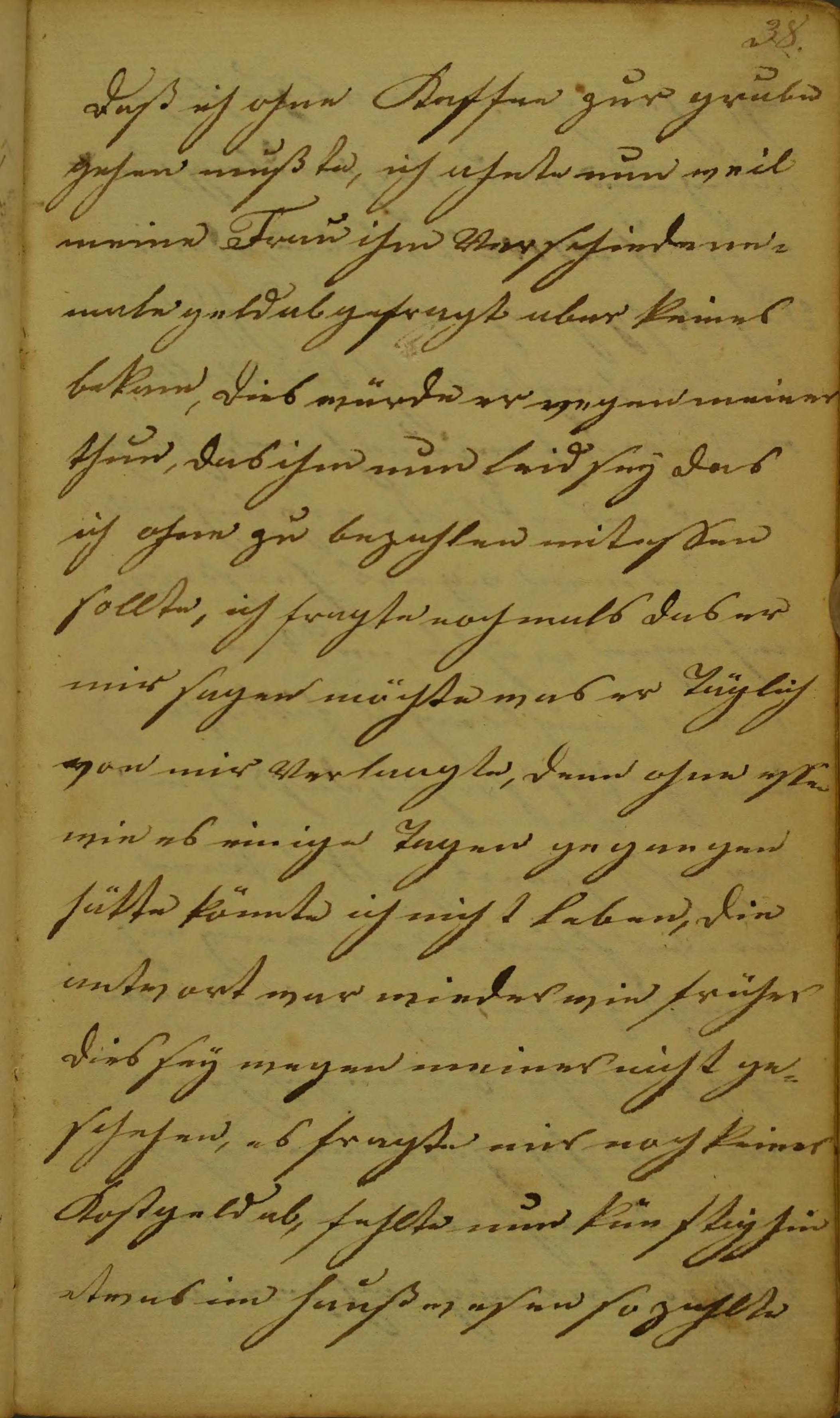 daß ich ohne Kaffee zur Grube gehen mußte, ich ahnte nun weil meine Frau ihm Verschiedene male geld abgefragt aber keines bekam, dies würde er wegen meiner thun, das ihm nun leid sey das ich ohne zu bezahlen mitessen sollte, ich fragte nochmals das er mir sagen möchte was er täglich von mir verlangte, denn ohne essen wie es einige Tagen gegangen hätte könnte ich nicht leben, die antwort war wieder wie früher dies sey wegen meiner nicht geschehen, es fragte mir noch keiner Kostgeld ab, fehlte nun künftighin etwas im Haußwesen so zahlte
