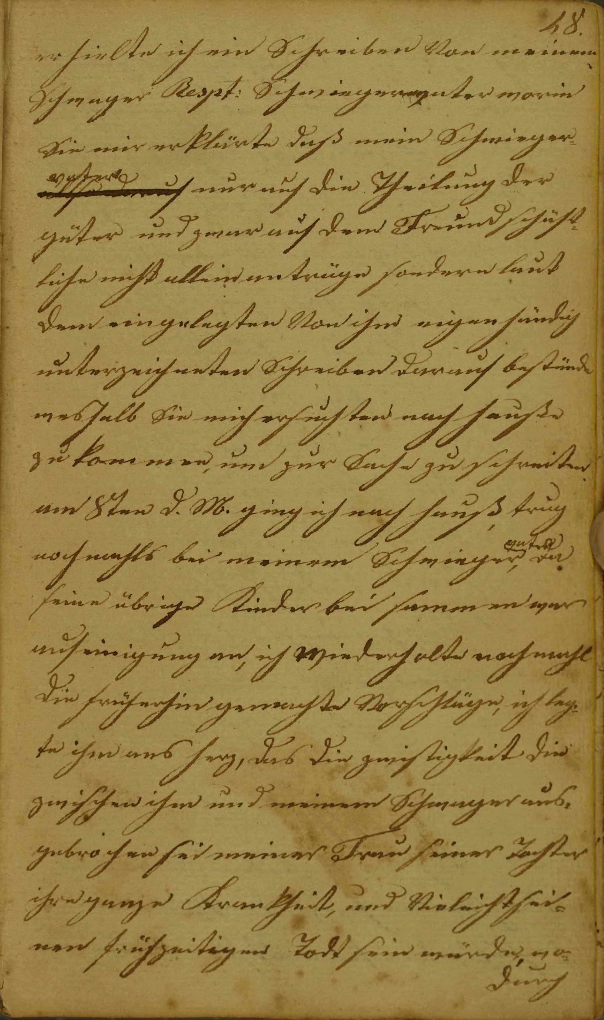 am 8ten d. M. ging ich nach hauß, trug nochmahls bei meinem Schwiegervater, da seine übrige Kinder beisammen war auf einigung an, ich wiederholte nochmahl die früherhin gemachte Vorschläge, ich legte ihm ans herz, das die zwistigkeit die zwischen ihm und meinem Schwager ausgebrochen sei meiner Frau seiner Tochter ihre ganze Krankheit, und Vieleicht seinen frühzeitigen Todt sein würde, wodurch