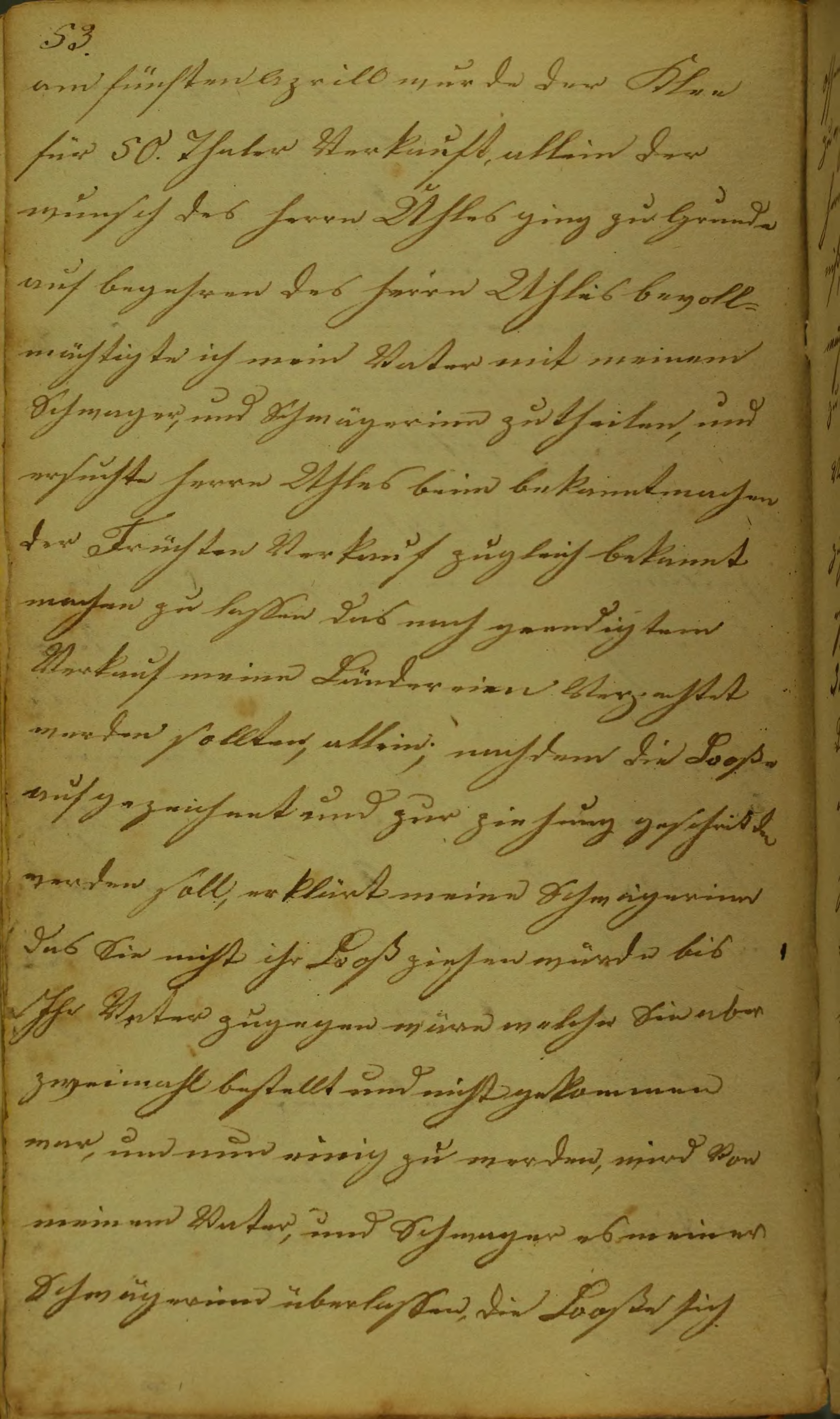 am fünften Aprill wurde der Klee für 50. Thaler Verkauft, allein der wunsch des herrn Uhles ging zu Grunde auf gegehren des herrn Uhles bevollmächtigte ich mein Vater mit meinem Schwager, und Schwägerinn zu theilen, und ersuchte herrn Uhles beim bekanntmachen der Früchten Verkauf zugleich bekannt machen zu lassen das nach geendigtem Verkauf meine Ländereien Verpachtet werden sollten, allein; nachdem die Looße aufgezeichnet und zur ziehung geschritten werden soll, erklärt meine Schwägerinn das Sie nicht ihr Looß ziehen würde bis Ihr Vater zugegen wäre welcher Sie aber zweimahl bestellt und nicht gekommen war, um nun einig zu werden, wird von meinem Vater, und Schwager es meiner Schwägerinn überlassen, die Looße sich