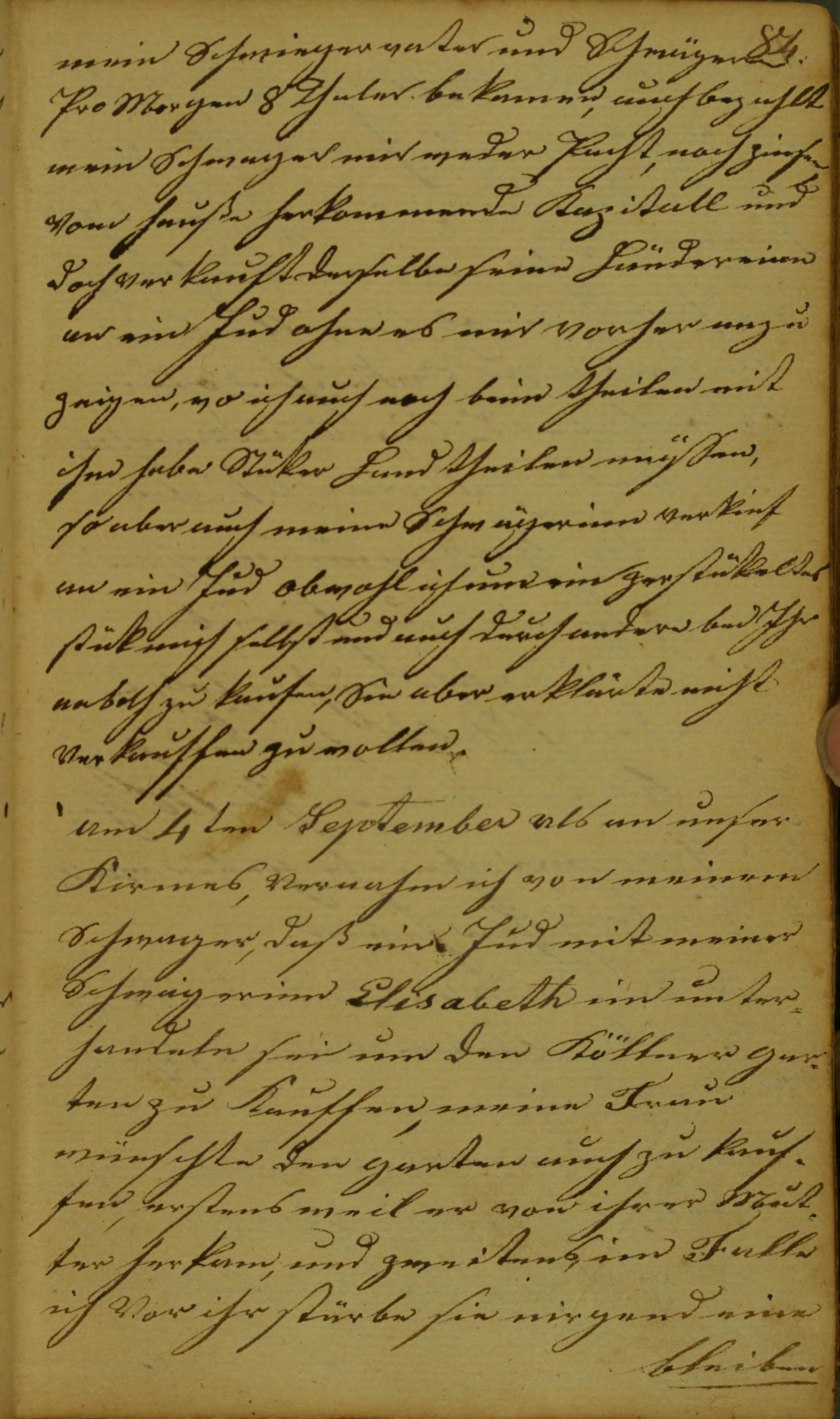 am 4ten September als an unser Kirmes, Vernahm ich von meinem Schwager, daß ein Jud mit meiner Schwägerinn Elisabeth im unterhandeln sei um den Köllner Garten zu Kauffen, meine Frau wünschte den garten auch zu kauffen, erstens weil er von ihrer Mutter herkam, und zweitens, im Falle ich Vor ihr stürbe sie nirgend eine bleiben