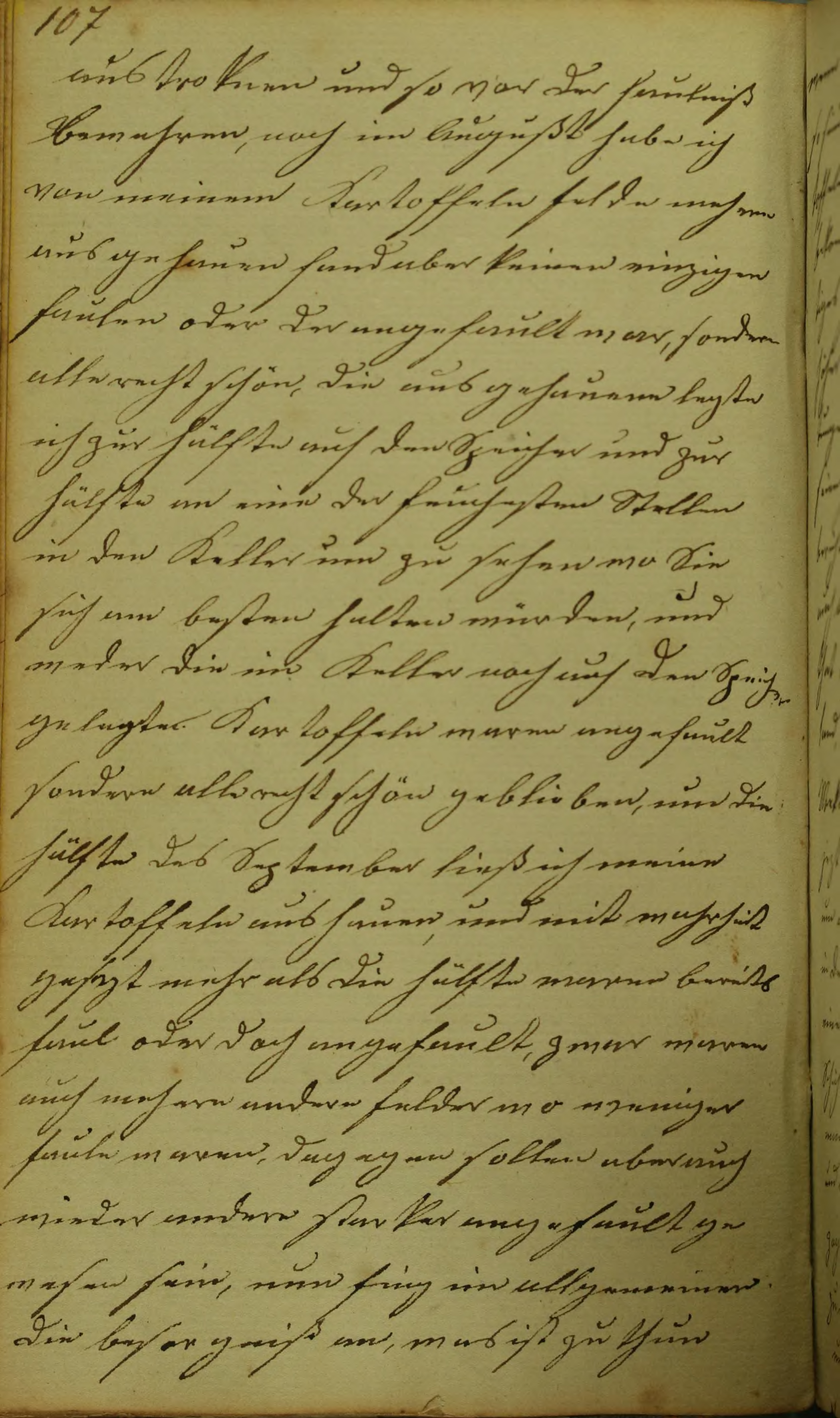 und so vor der faulniß bewahren, noch im Augußt habe ich von meinem Kartoffeln felde mehrere ausgehauen fand aber keinen einzigen faulen oder der angefault war, sondern alle recht schön, die ausgehauene legte ich zur hälfte auf den Speicher und zur hälfte an eine der feuchesten Stellen in den Keller um zu sehen wo Sie sich am besten halten würden, und weder die im Keller noch auf den Speicher gelegten Kartoffeln waren angefault sondern alle recht schön geblieben, um die hälfte des September ließ ich meine Kartoffeln aushauen, und mit wahrheit gesagt mehr als die hälfte waren bereits faul oder doch angefault, zwar waren auch mehern andere felder wo weniger faule waren, dagegen sollen aber auch wieder andere starker angefault gewesen sein, nun fing im allgemeinen die besorgniß an, was ist zu thun