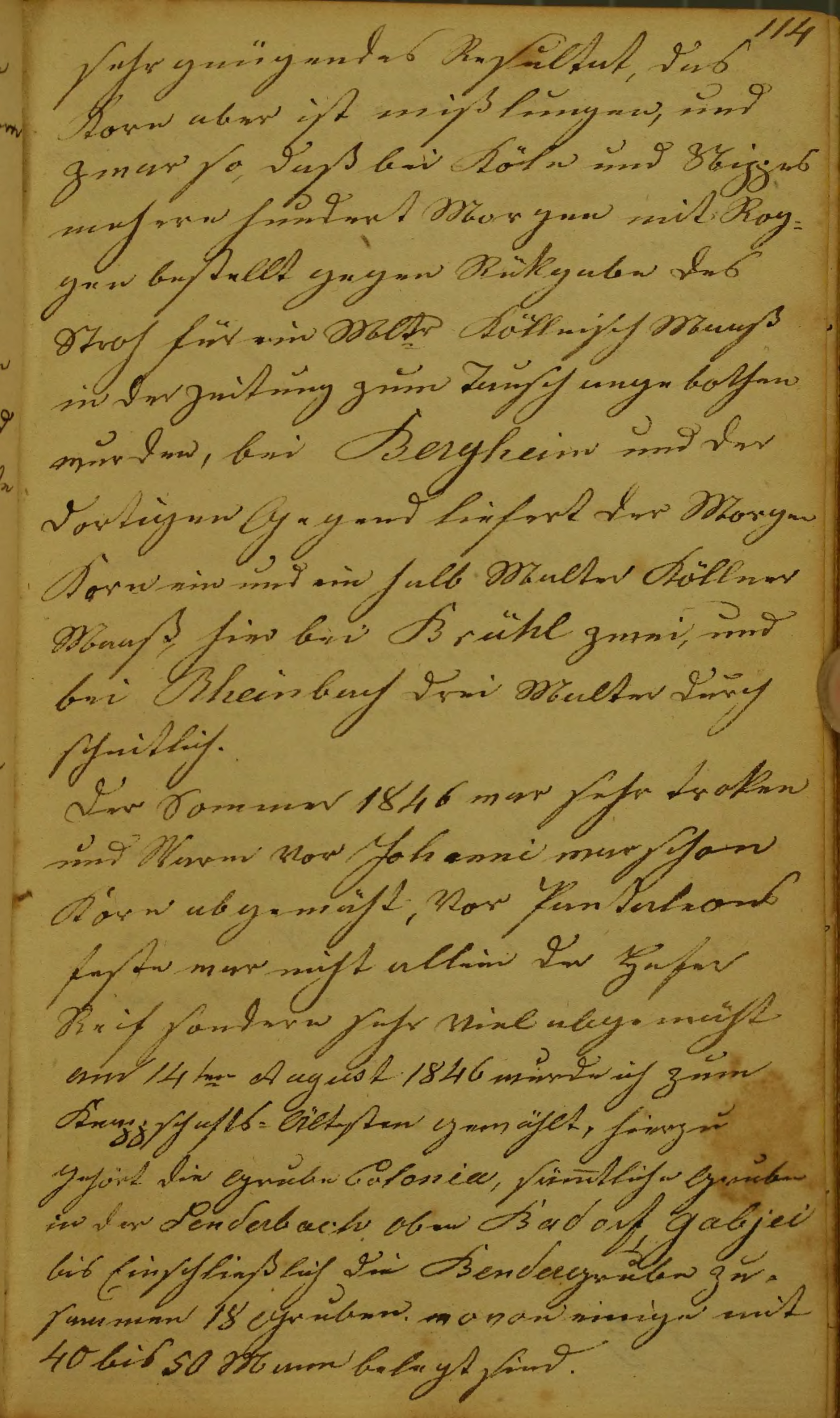 der Sommer 1846 war sehr troken und Warm Vor Johanni war schon Korn abgemäht, Vor Pantaleons feste war nicht allein der Hafer Reif sondern sehr Viel abgemäht