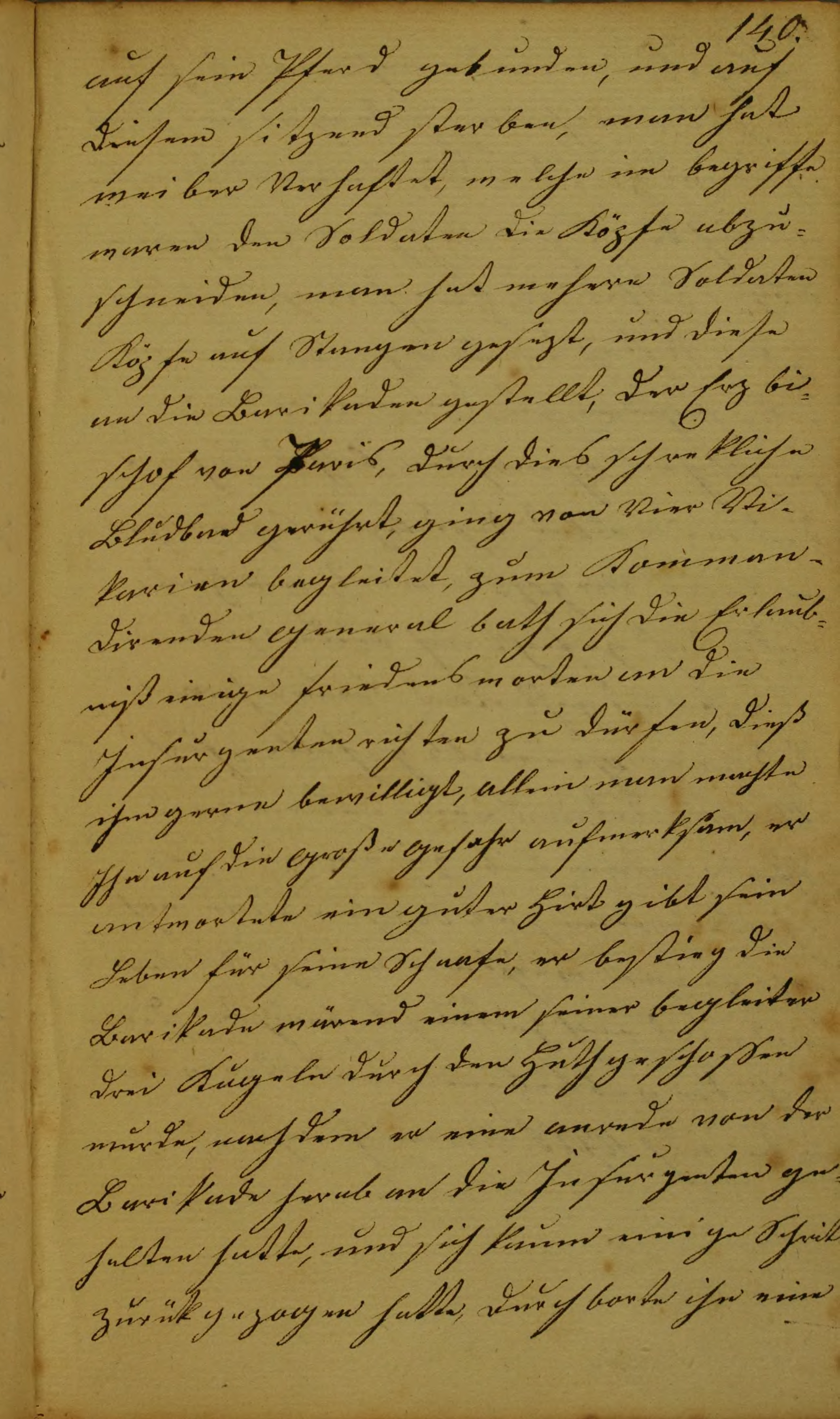 auf sein Pferd gebunden, und auf diesem sitzend sterben, man hat weiber Verhaftet, welche im begriffe waren den Soldaten die Köpfe abzuschneiden, man hat mehere Soldaten Köpfe auf Stangen gesezt, und diese an die Barikaden gestellt, der Erzbischof von Paris, durch dies schrekliche Bludbad gerührt, ging von Vier Vikarien begleitet, zum Kommandirenden general bath sich die Erlaubniß einige friedensworten an die Insurgenten richten zu dürfen, dieß ihm gerne bewilligt, allein man machte Ihn auf die Große Gefahr aufmerksam, er antwortete ein guter Hirt gibt sein Leben für seine Schaafe, er bestieg die Barikade wärend einem seiner begleiter drei Kugeln durch den Huth geschossen wurde, nachdem er eine anrede von der Barikade herab an die Insurgenten gehalten hatte, und sich kaum einige Schrit zurükgezogen hatte, durchborte ihn eine
