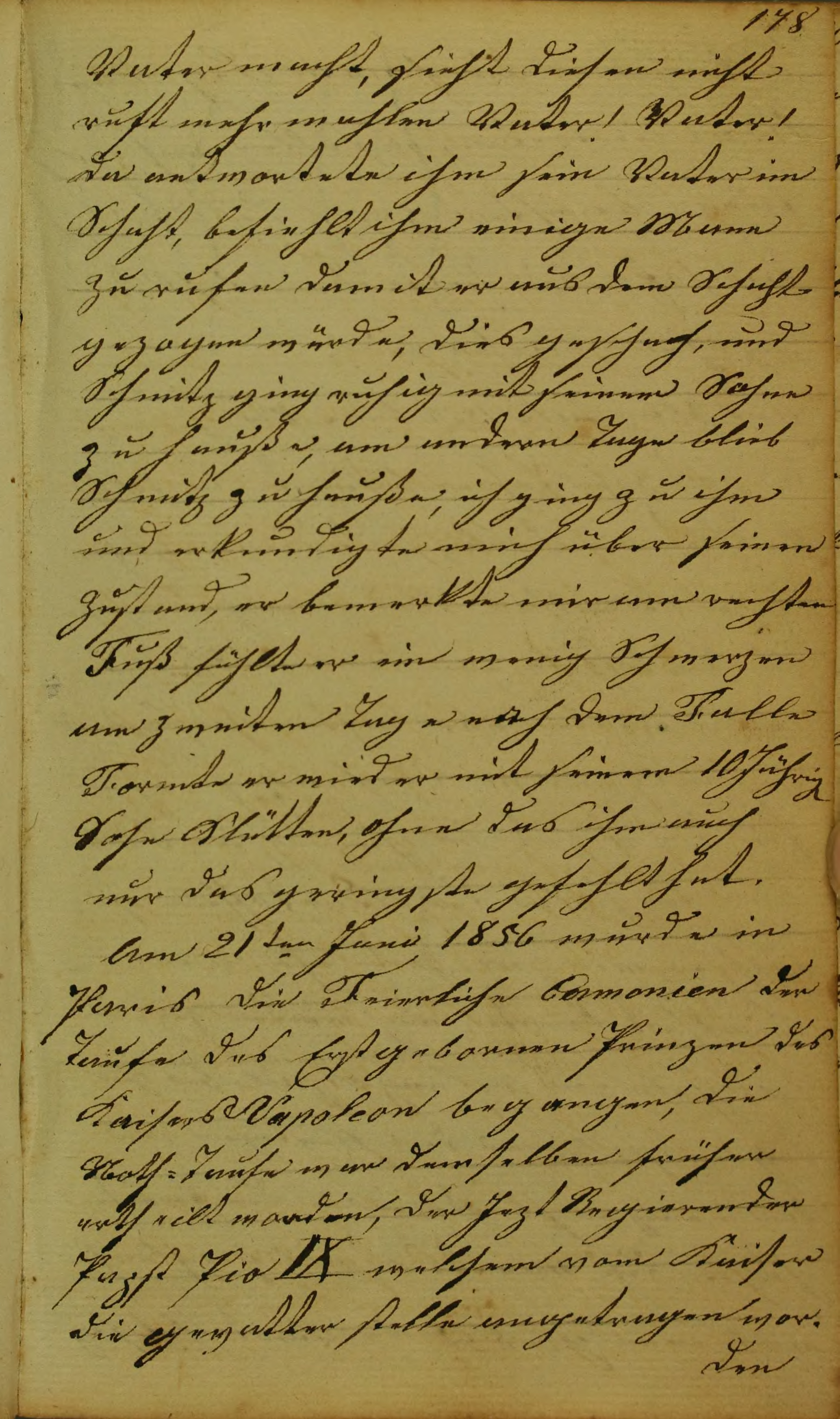 Am 21ten Juni 1856 wurde in Paris die Feierliche Cermonien der Taufe des Erstgebornen Prinzen des Kaisers Napoleon begangen, die Noth-Taufe war demselben früher ertheilt worden, der Jezt Regierende Papst Pio IX welchem vom Kaiser die Gevatterstelle angetragen worden