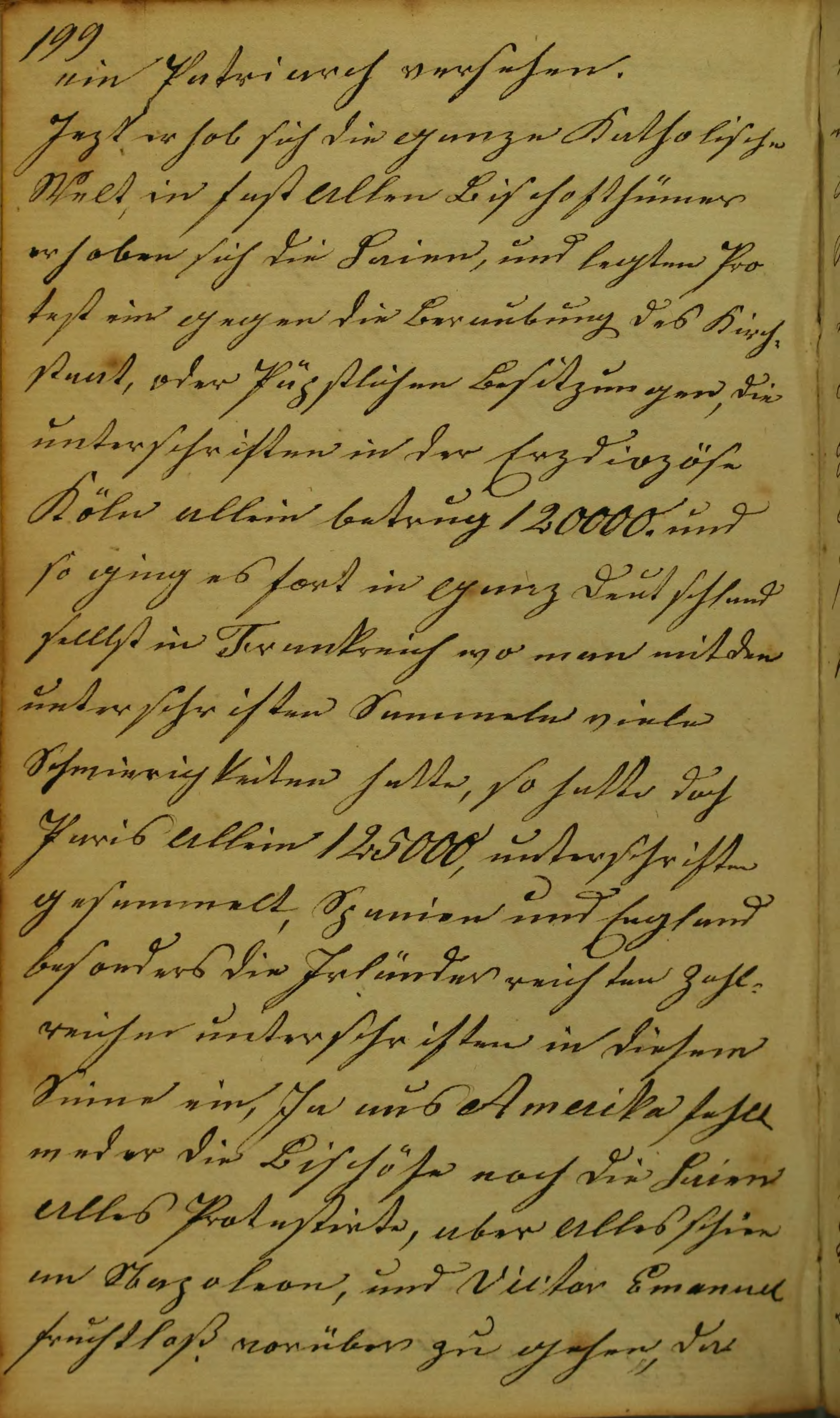 Jezt erhob sich die ganze Katholische Welt in fast allen Bischofthümer erhoben sich die Laien, und legten Protest ein gegen die Beraubung des Kirchstaat, oder Päpstlichen Besitzungen, die unterschriften in der Erzdiozöse Köln allein betrug 120000. und so ging es fort in ganz Deutschland sellbst in Frankreich wo man mit den Unterschriften Sammeln viele Schwierigkeiten hatte, so hatte doch Paris allein 125000, unterschriften gesammelt, Spanien und England besonders die Irländer reichten Zahlreiche unterschriften in diesem Sinne ein, Ja aus Amerika fehlte weder die Bischöfe noch die Laien