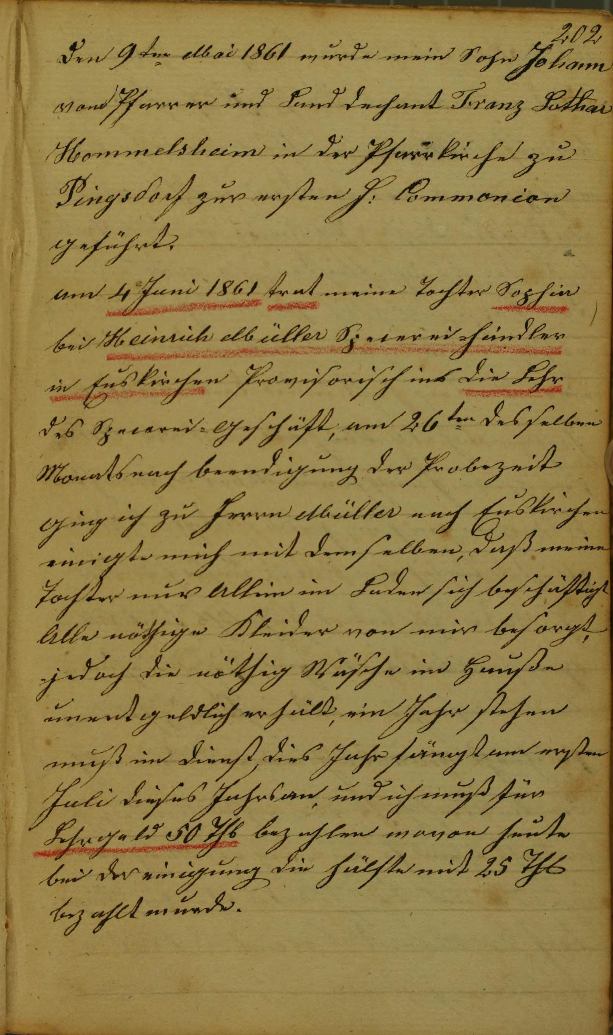 Den 9ten Mai 1861 wurde mein Sohn Johann vom Pfarrer und Landdechant Franz Lothar Hommelsheim in der Pfarrkirche zu Pingsdorf zur ersten H. Commonion geführt.