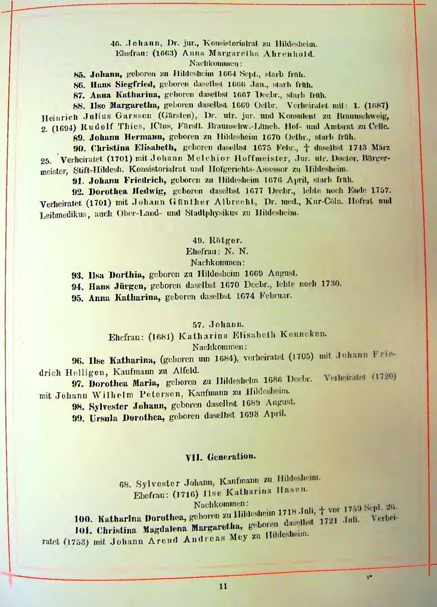 46. Johann, Dr. jur., Konsistorialrat zu Hildesheim.