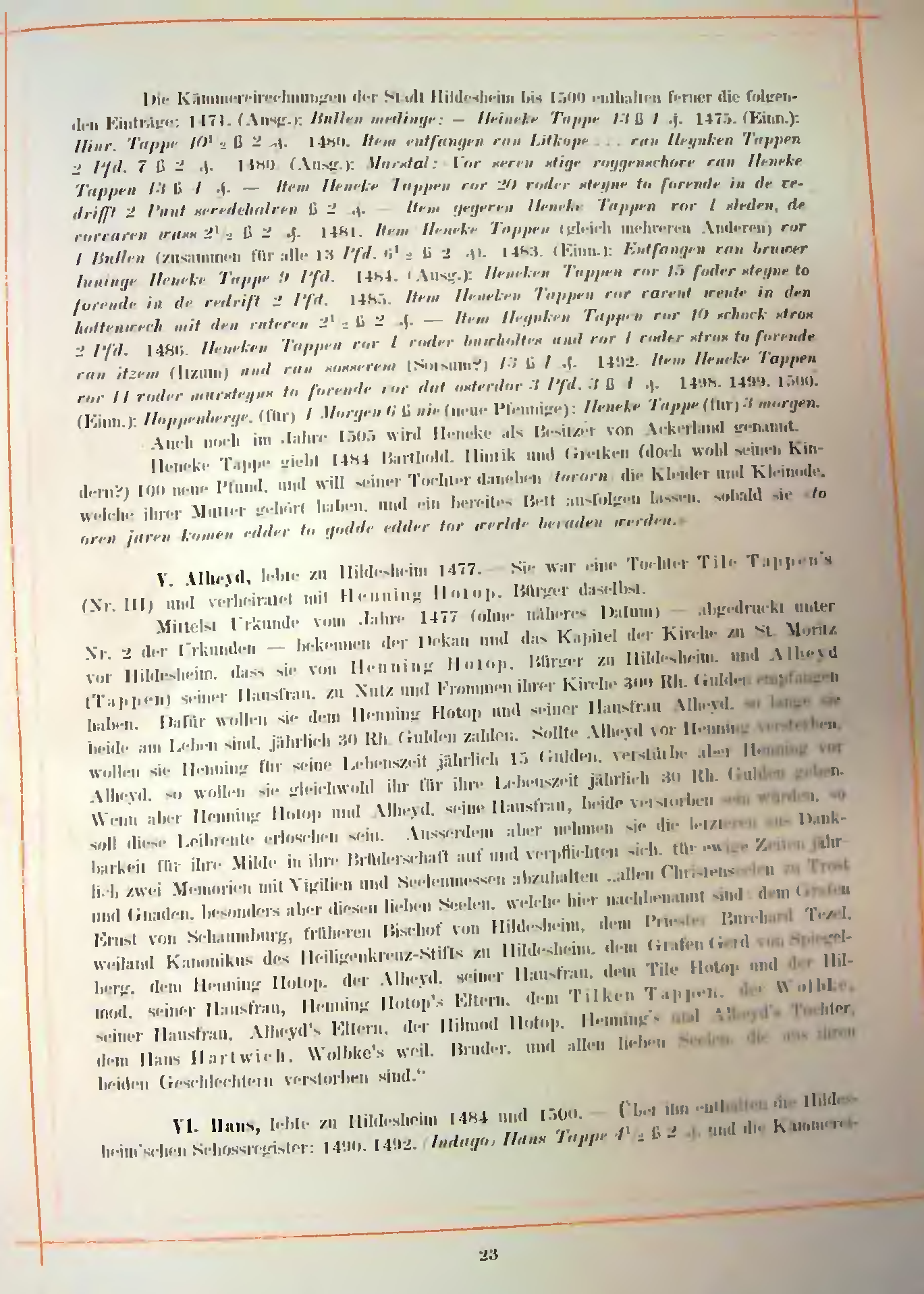 V. Alheyd, lebte zu Hildesheim 1477. — Sie war eine Tochter Tile Tappen’s (Nr. III) und verheiratet mit Henning Hotop. Bürger daselbst.