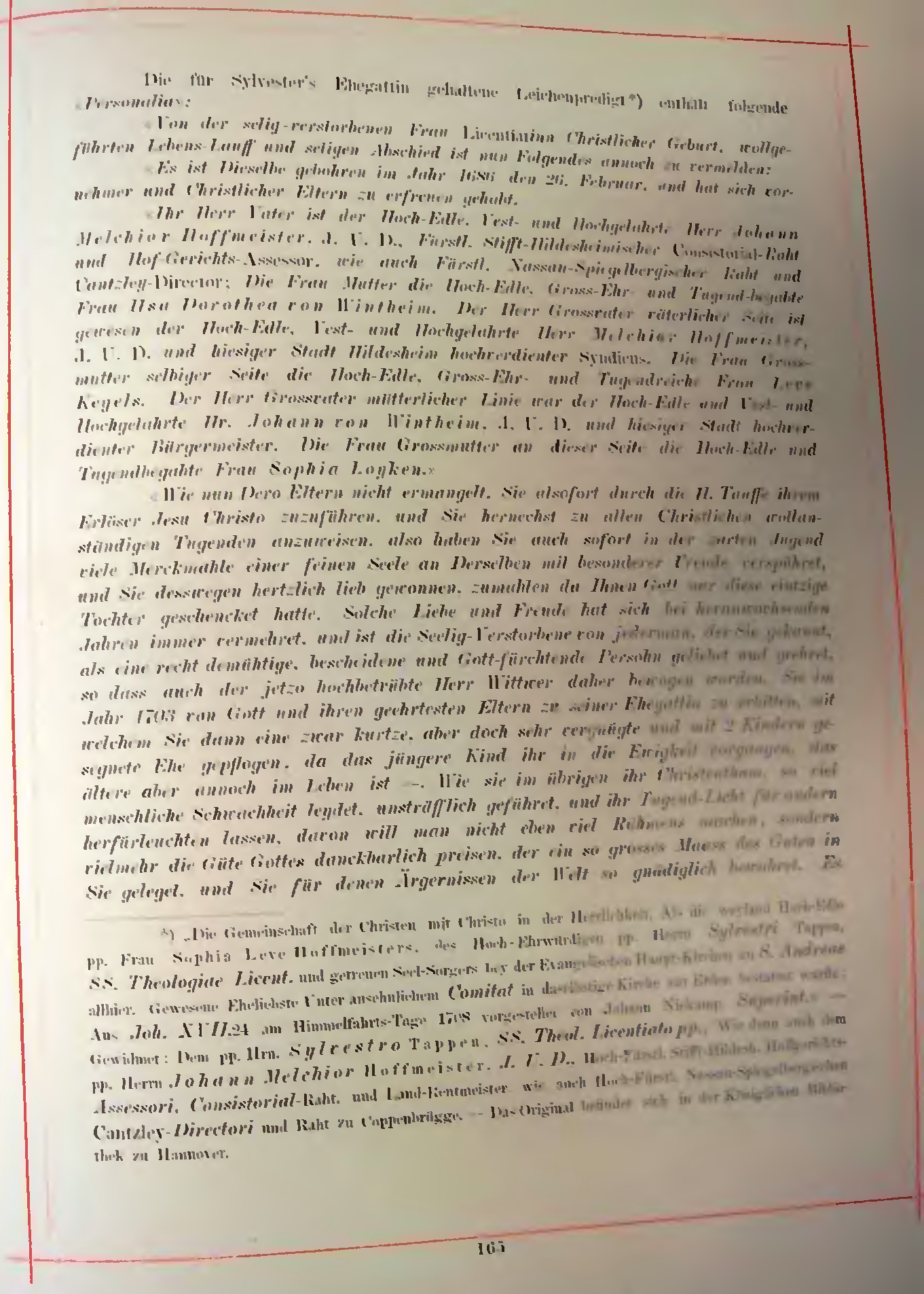Die für Sylvester's Ehegattin gehaltene Leichenpredigt[1] enthalt folgende "Personalia":