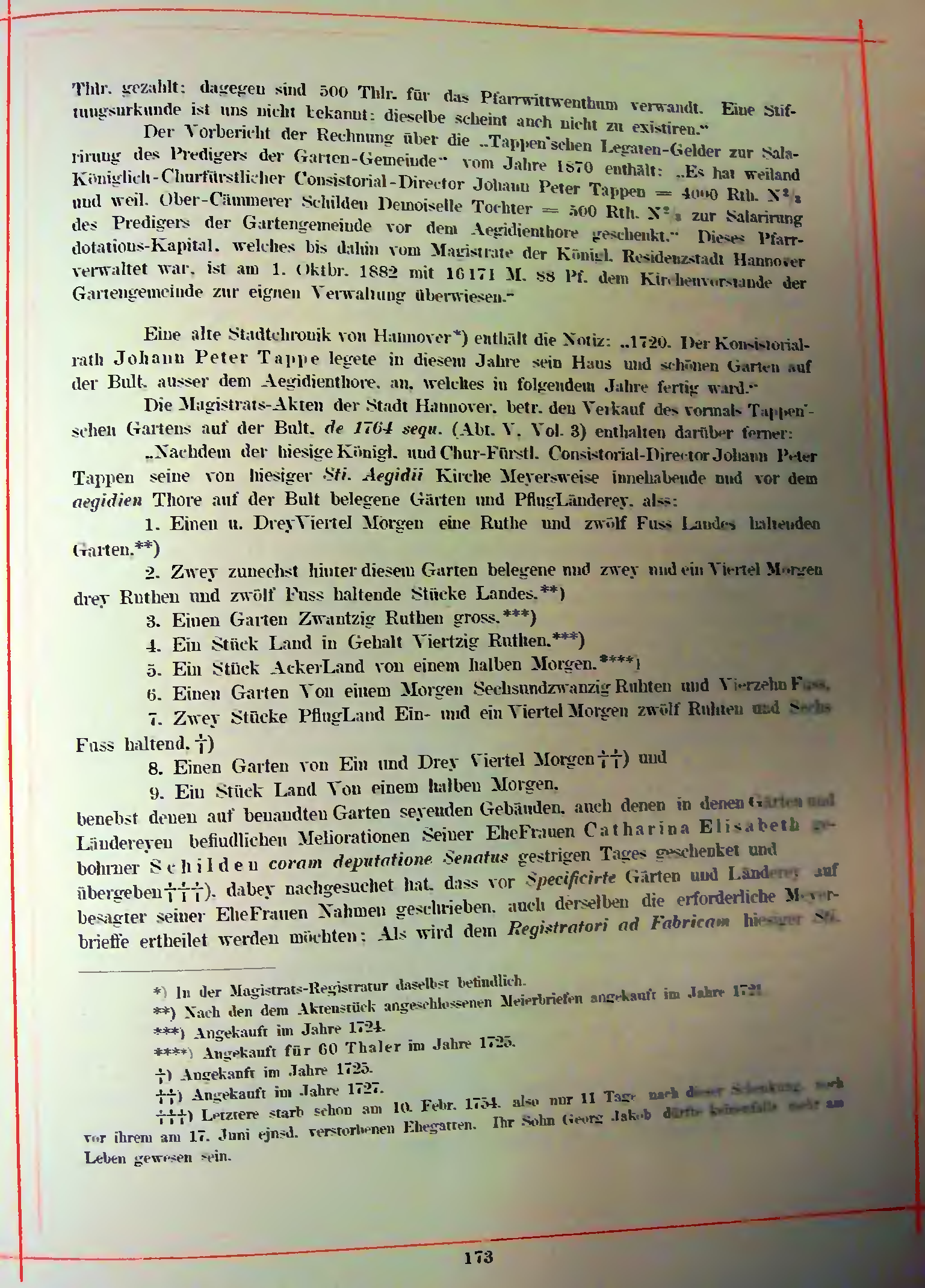 Die Magistrats-Akten der Stadt Hannover, betr. den Verkauf des vormals Tappen’schen Gartens auf der Bult, de 1764 sequ. (Abt. V, Vol. 3) enthalten darüber ferner: