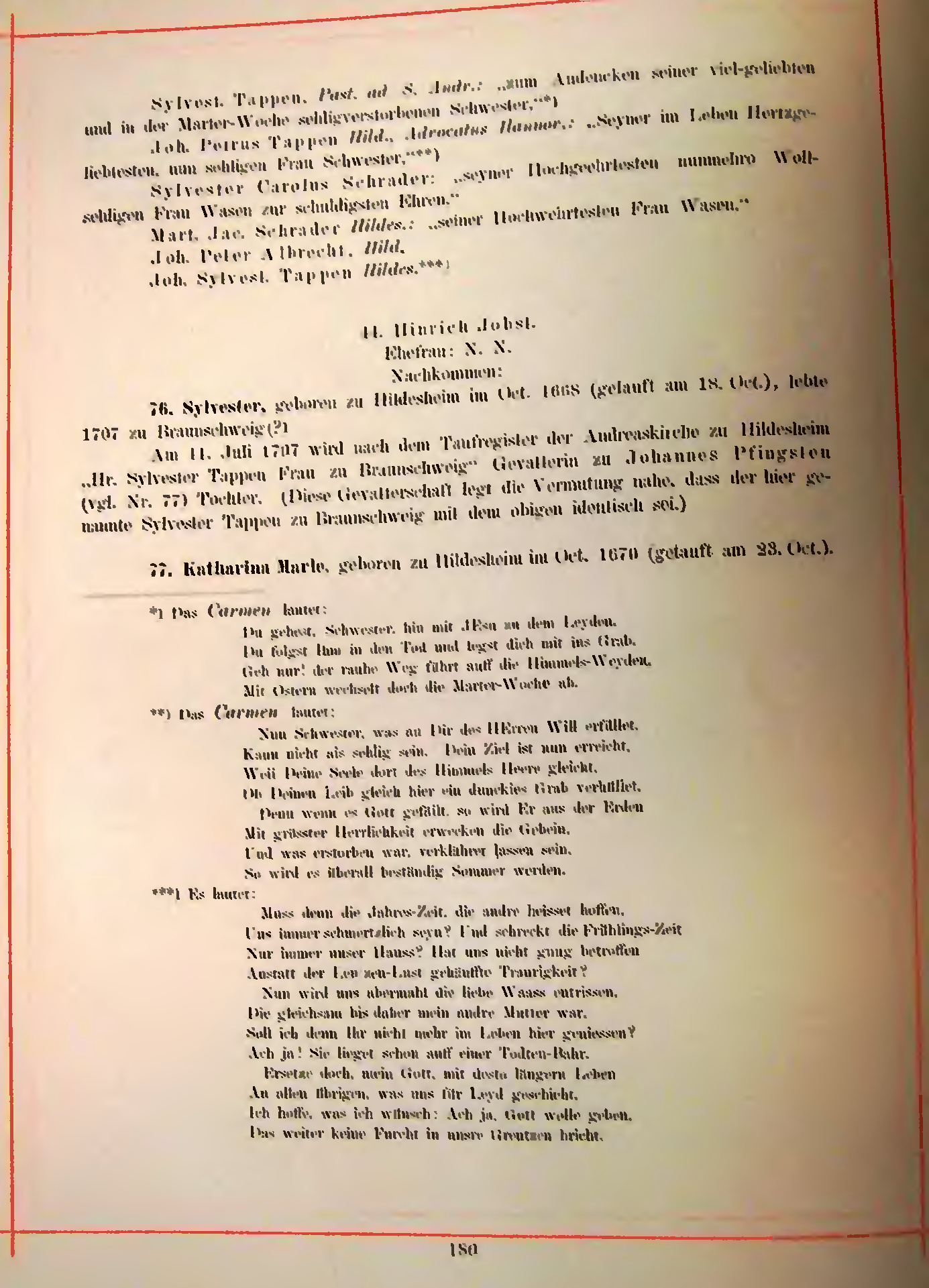 76. Sylvester, geboren zu Hildesheim im Oct. 1668 (getauft am 18. Oct), lebte 1707 zu Braunschweig (?)
