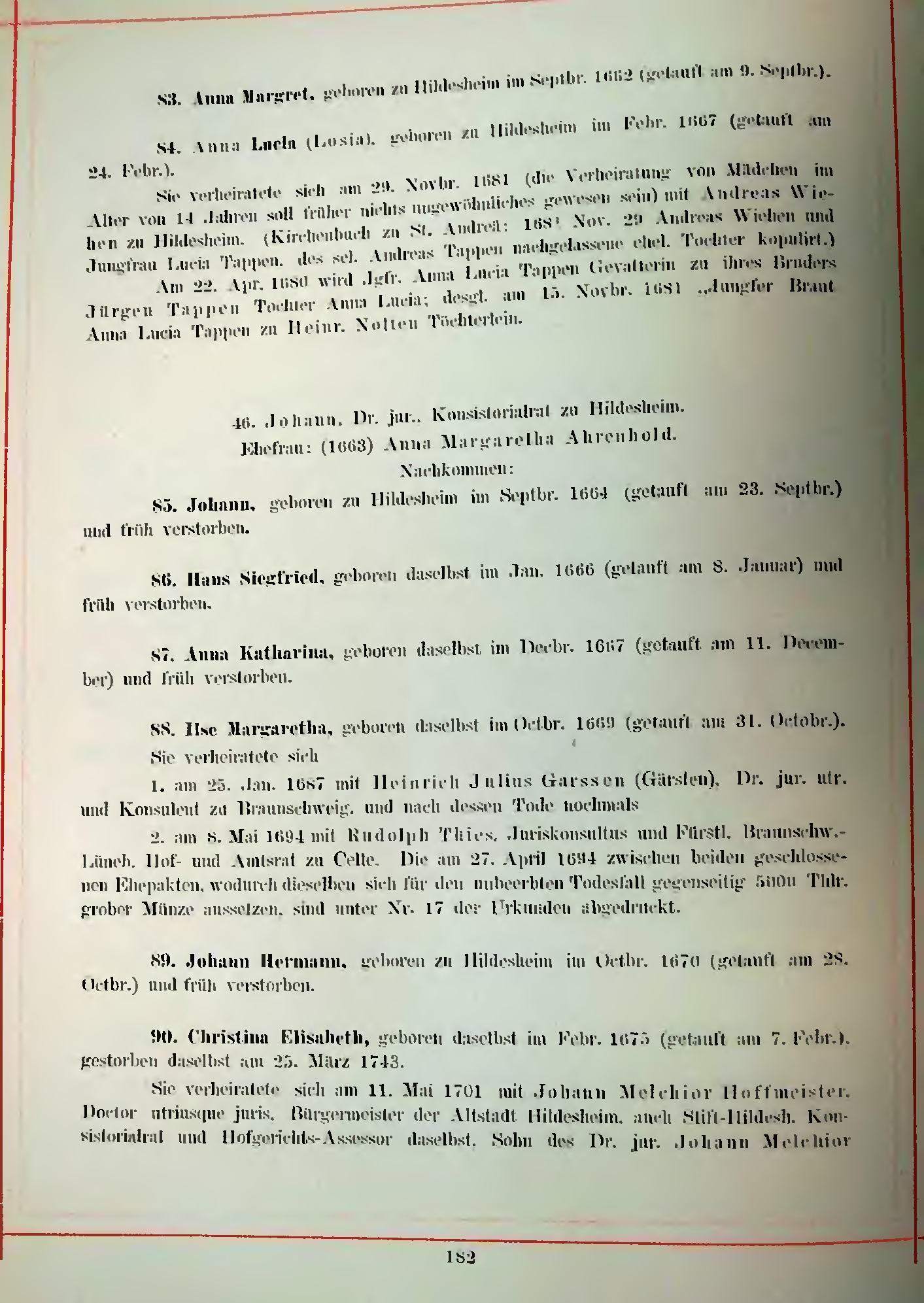 85. Johann, geboren zu Hildesheim im Septbr. 1664 (getauft am 28. Septbr.) und früh verstorben.