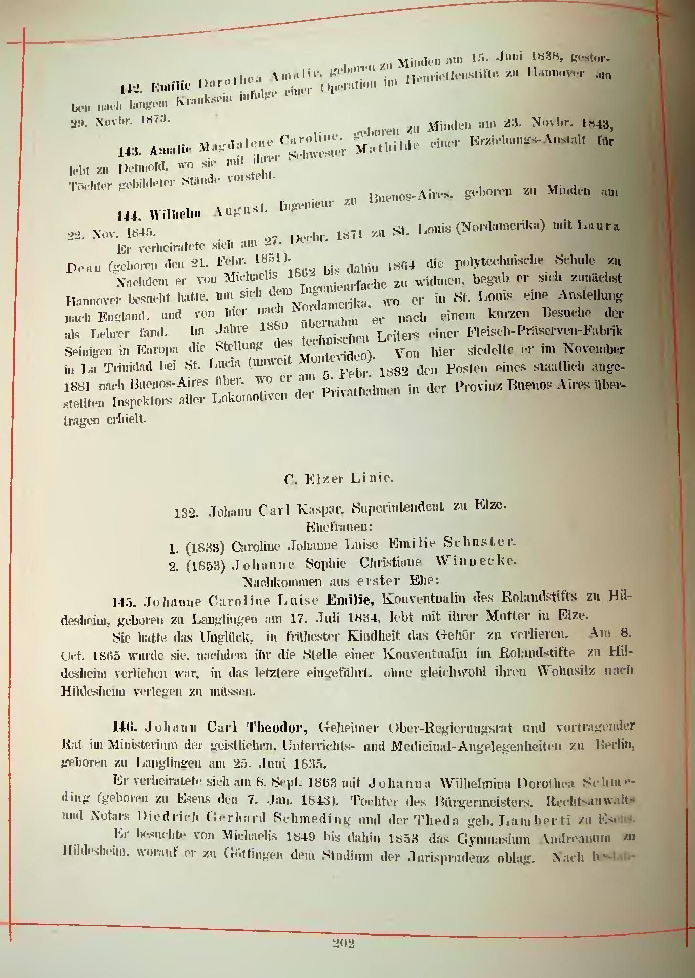 144. Wilhelm August, Ingenieur zu Buenos-Aires, geboren zu Minden am 22. Nov. 1845.