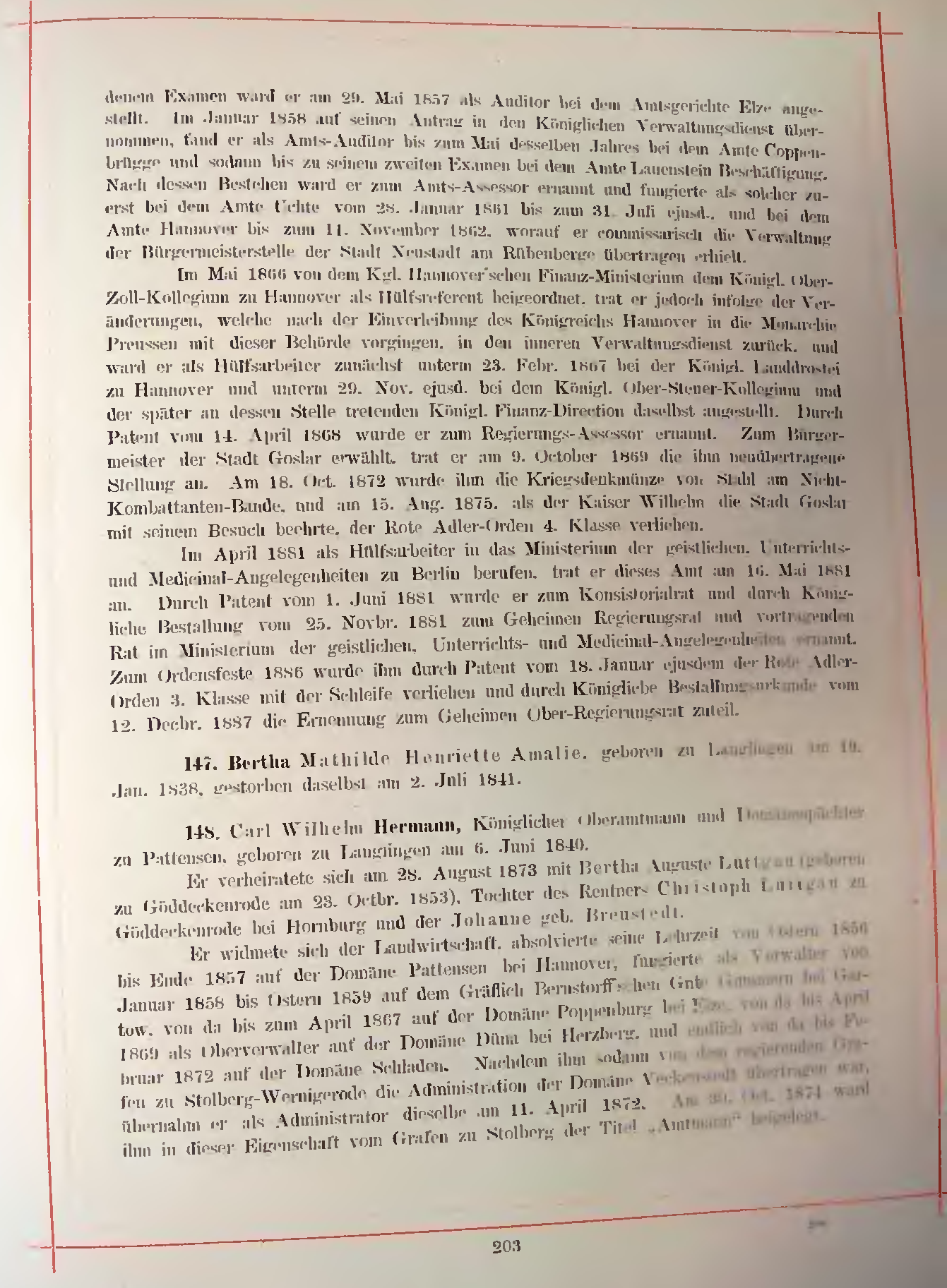 148. Carl Wilhelm Hermann, Königlicher Oberamtmann und Domänenpächter zu Pattensen, geboren zu Langlingen am 6. Juni 1840.