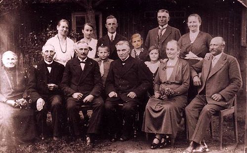 Untere Reihe: Berta Hohn geb. Schmeil u. Albert Hohn, Franz Kausch, sein Sohn Kurt Kausch, August Kausch, Emma Annuscheit, geb. Kausch u. Friedrich Kausch