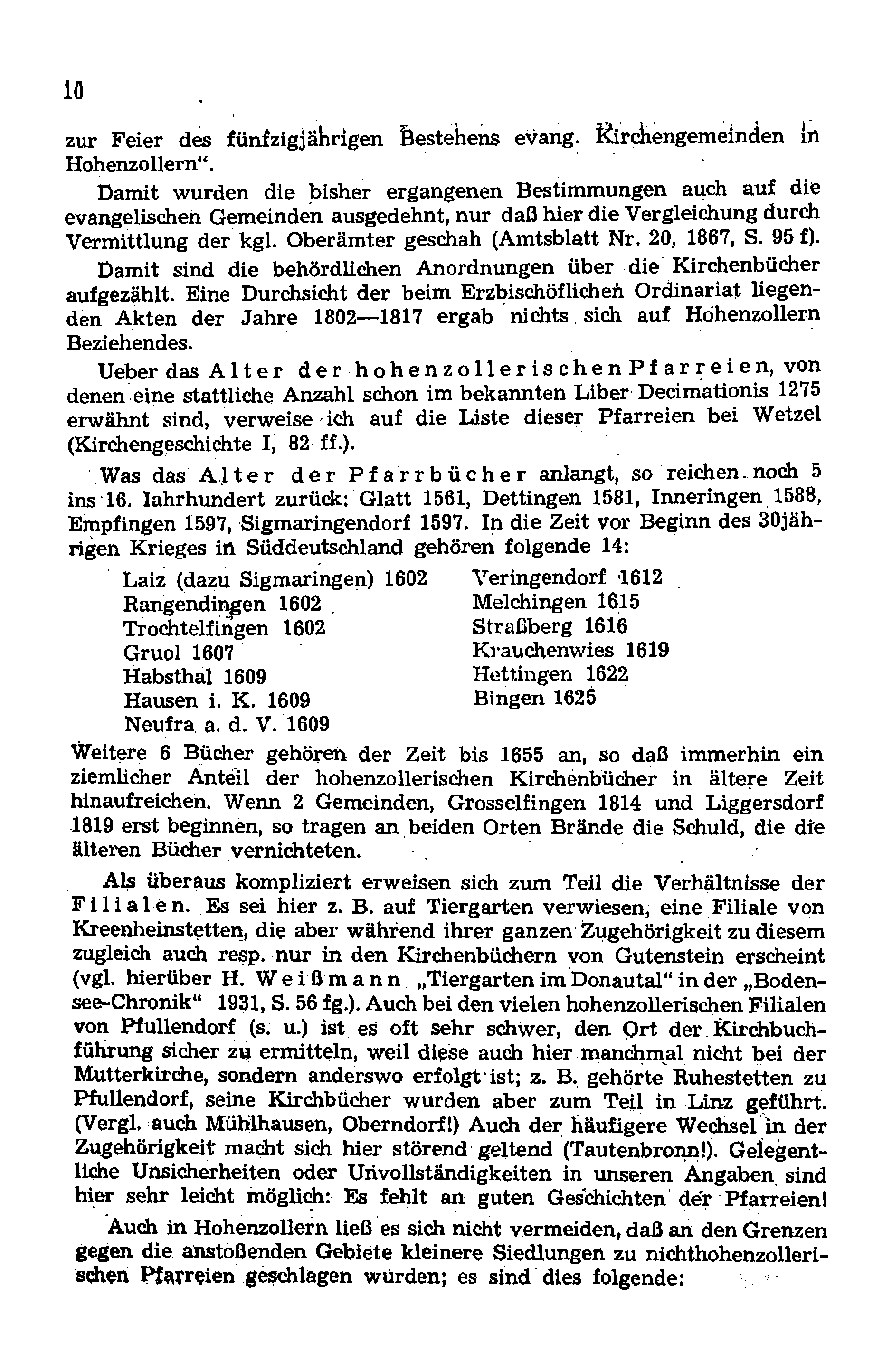 Verzeichnis der Kirchenbücher Hohenzollerns (Haug)/10
