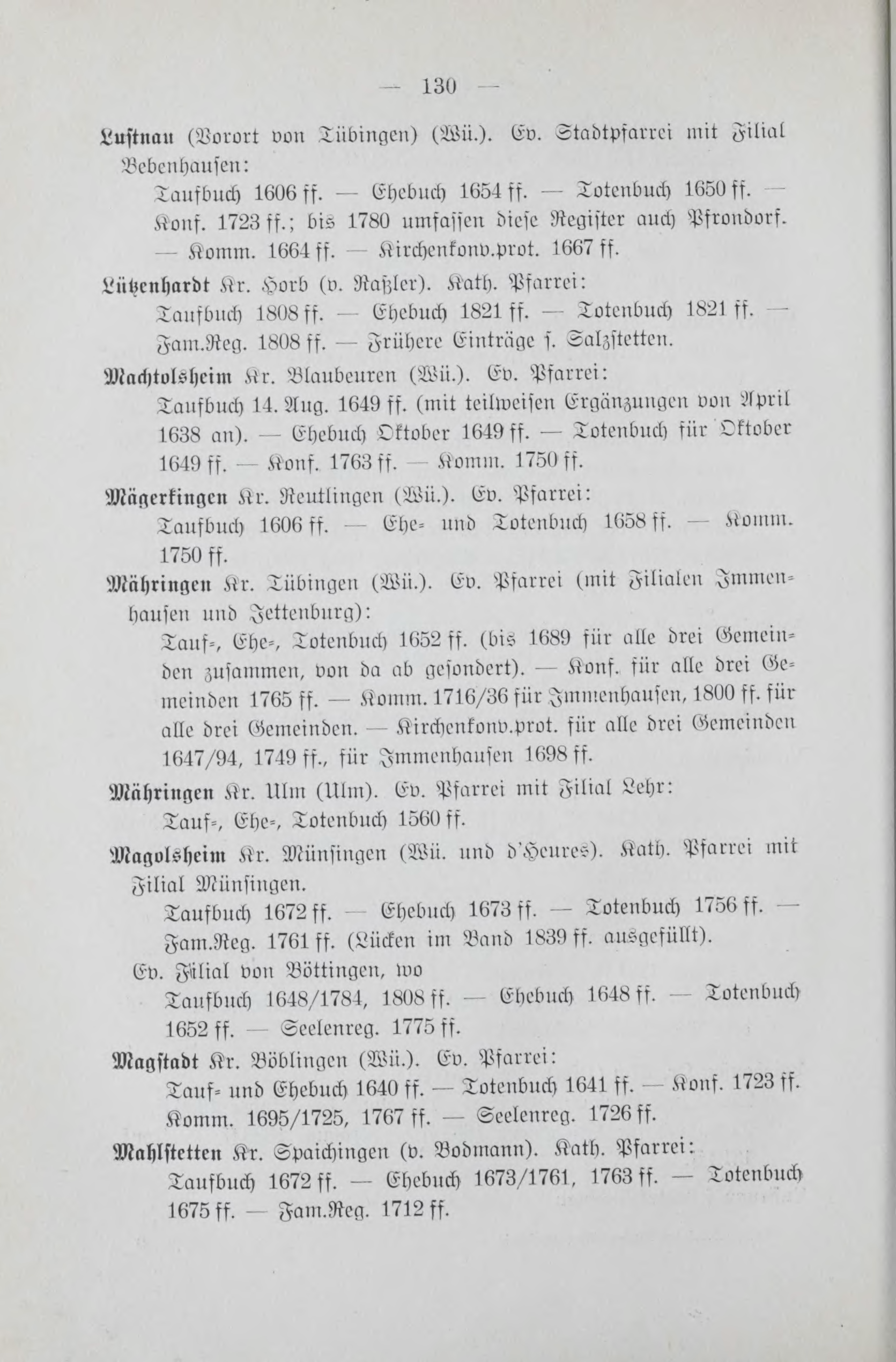 Verzeichnis der württembergischen Kirchenbücher (1938)/130