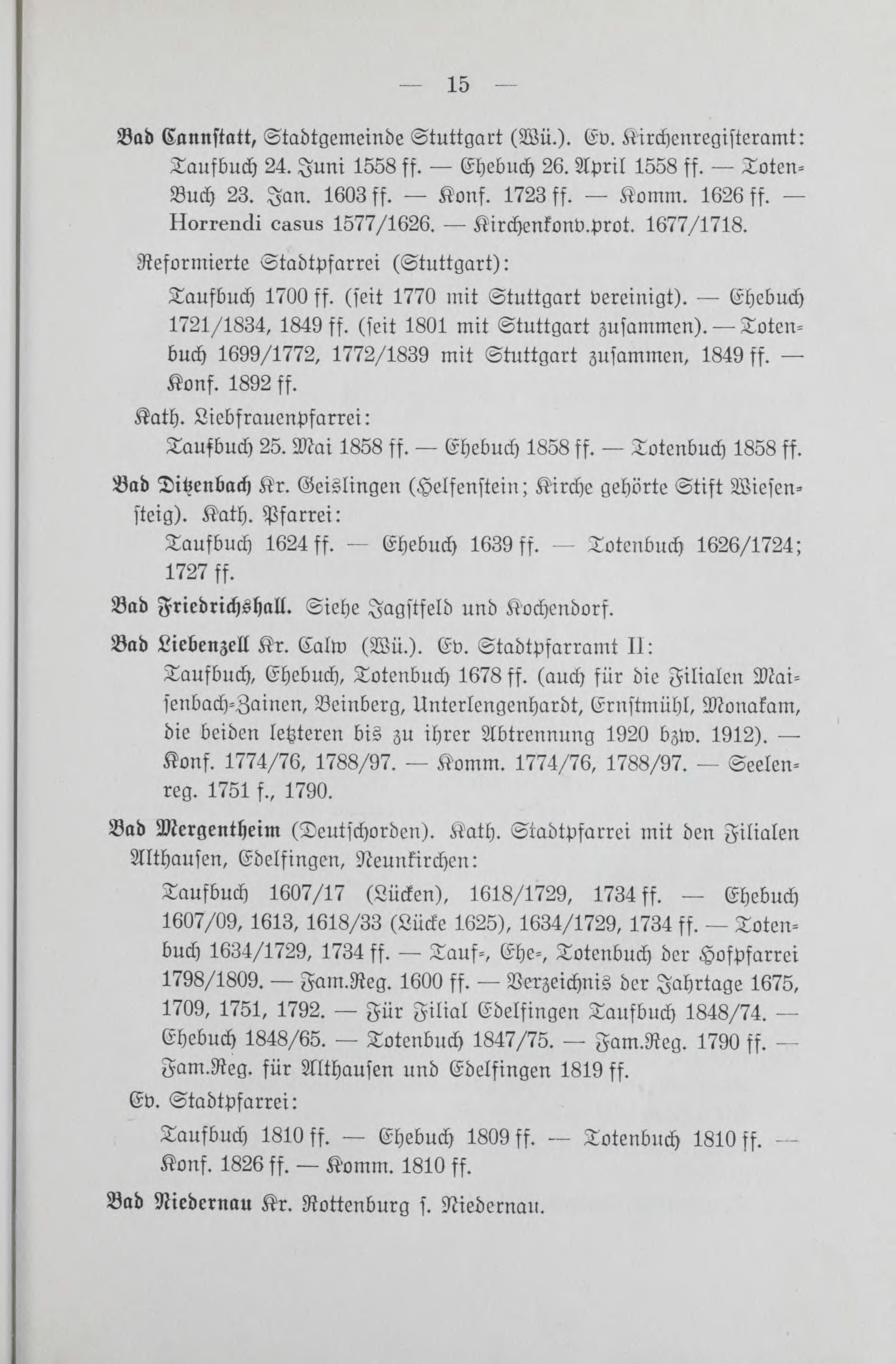 Verzeichnis der württembergischen Kirchenbücher (1938)/15