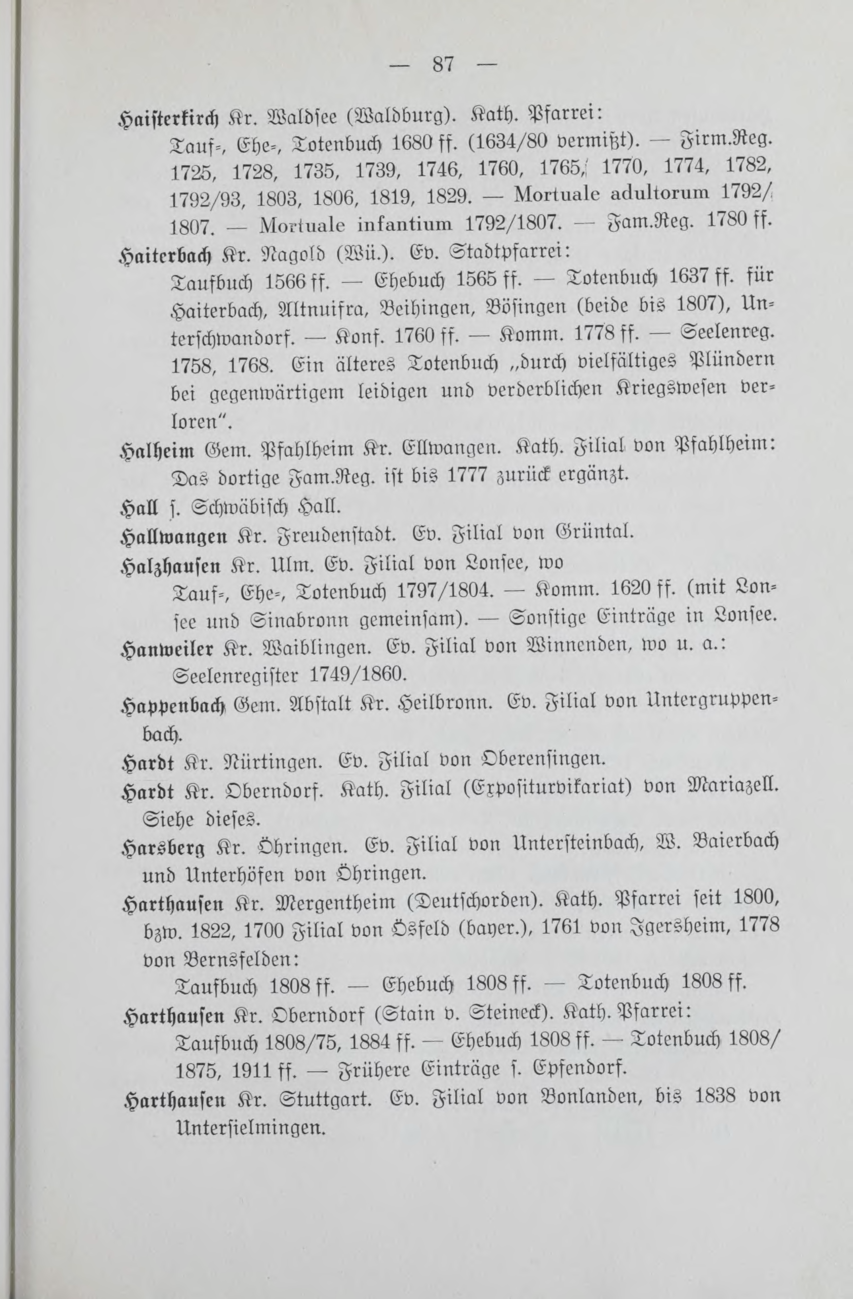 Verzeichnis der württembergischen Kirchenbücher (1938)/87