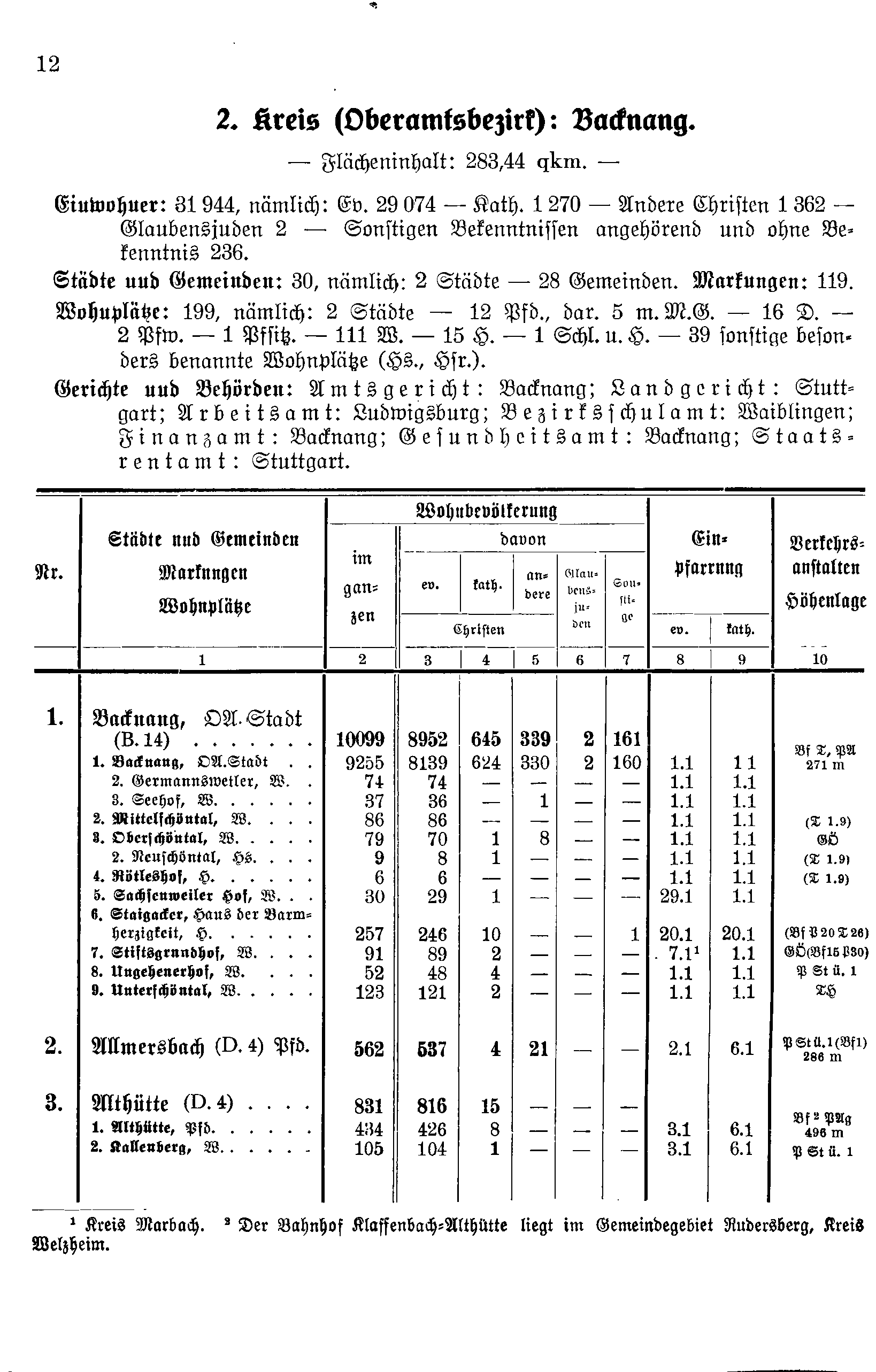 2. Kreis (Oberamtsbezirk): Backnang.