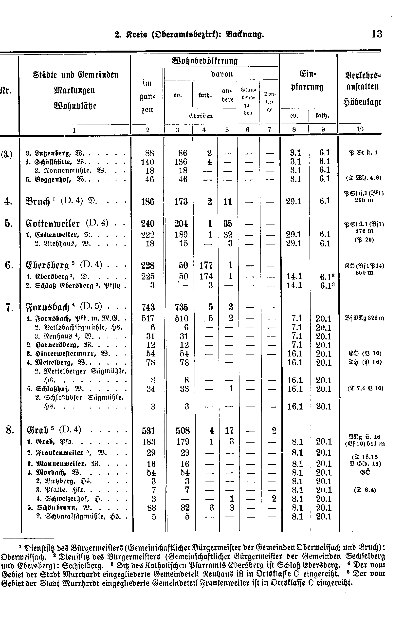 Wohnbevölkerung | Einpfarrung | Verkehrs-anstalten Höhenlage | ||||||