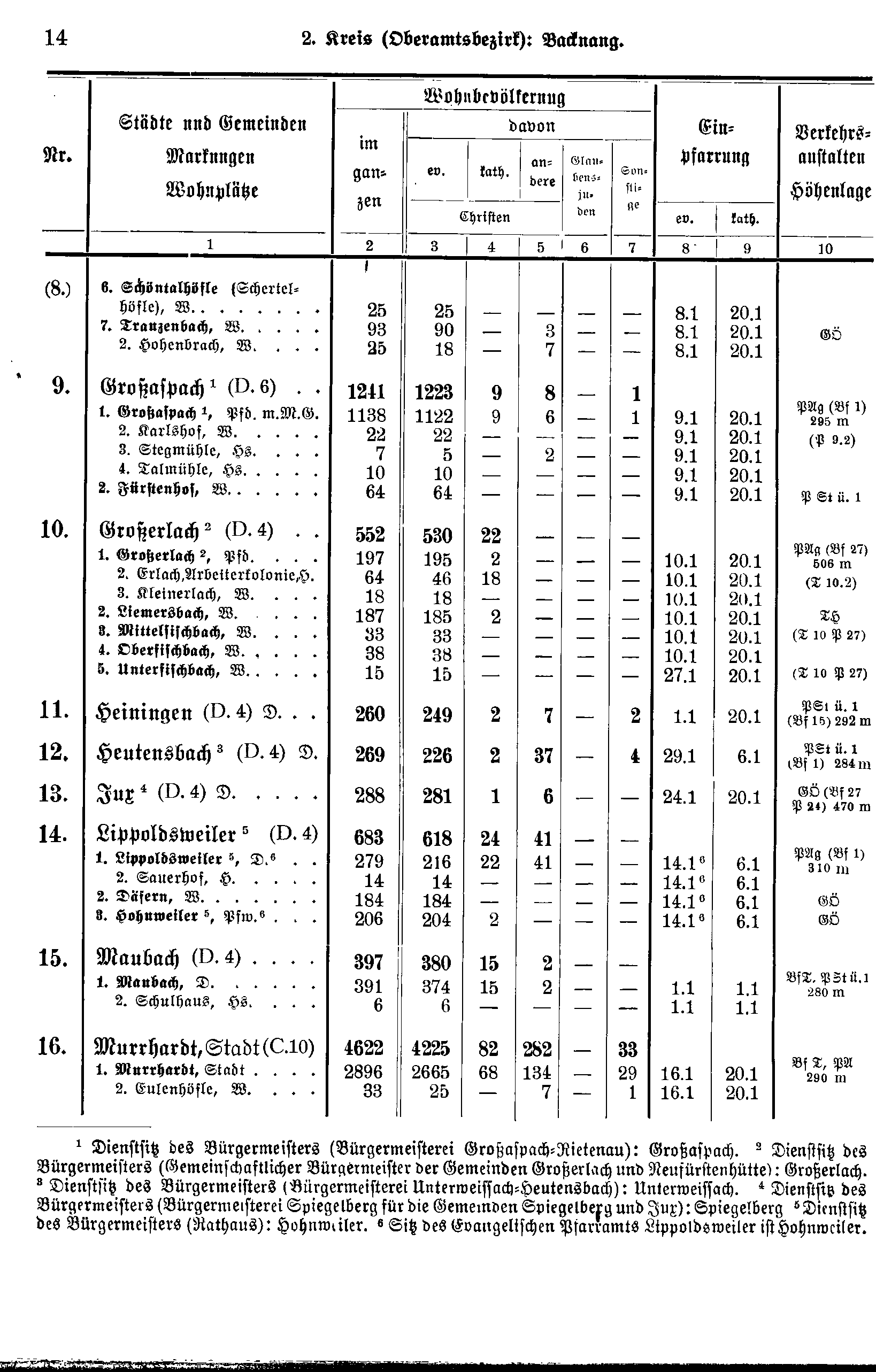 | 10. | Großerlach[2] (D.4) | 552 | 22 | - | - | - | - | |||
