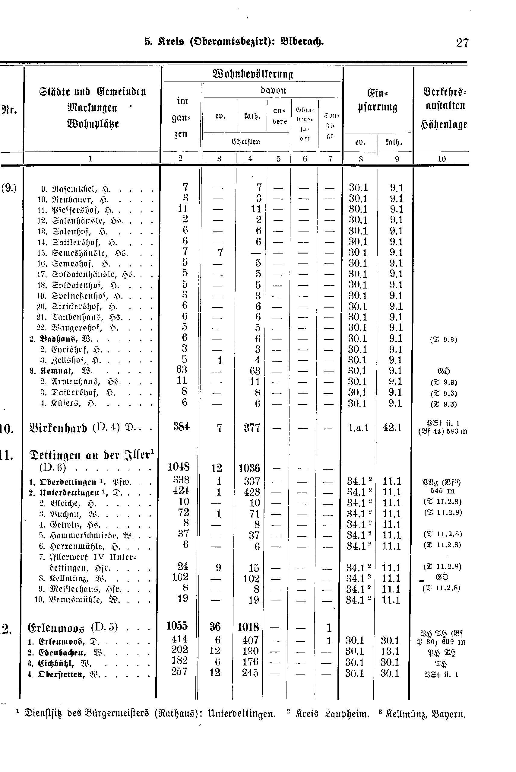 Wohnbevölkerung | Einpfarrung | Verkehrs-anstalten Höhenlage | ||||||