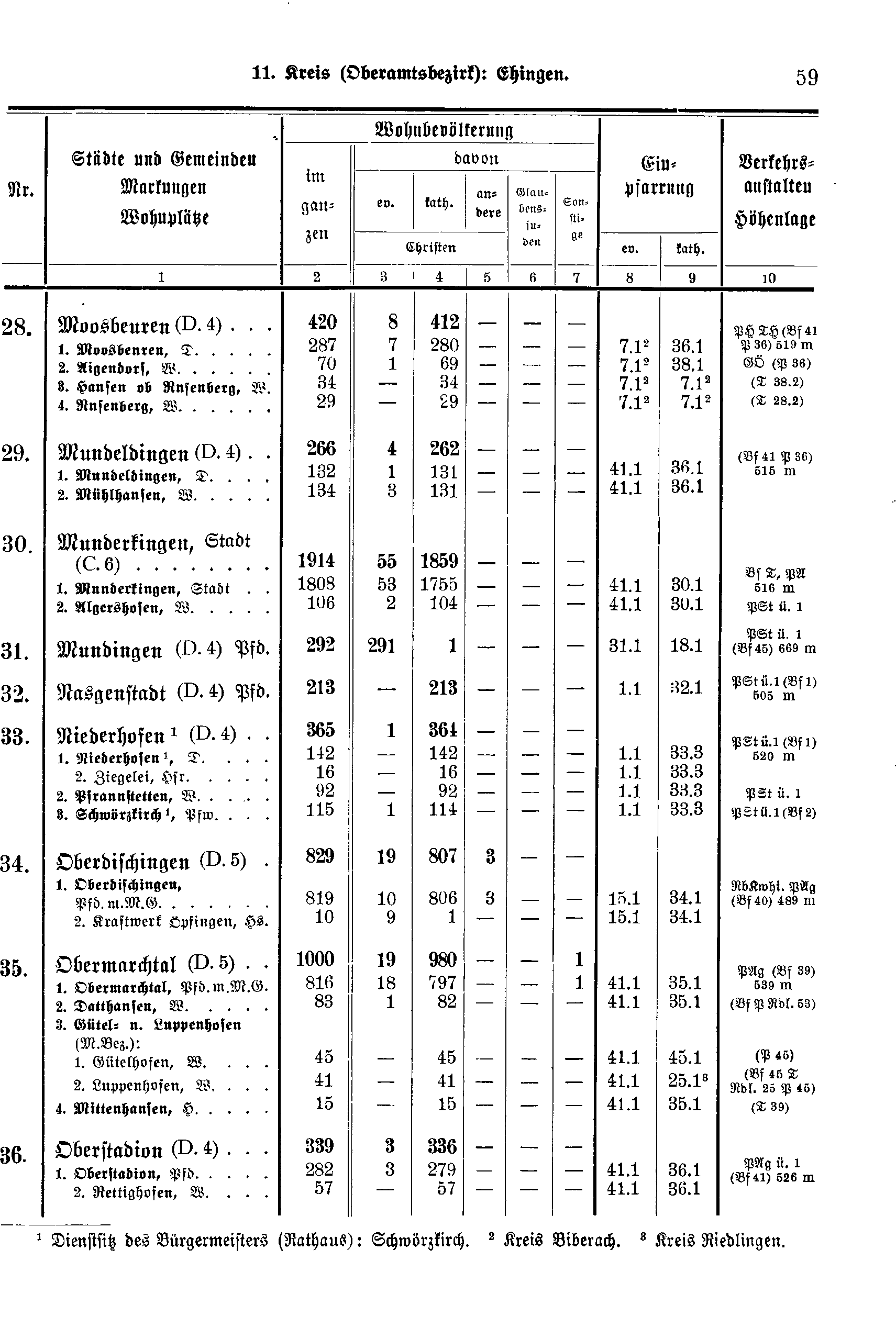 Wohnbevölkerung | Einpfarrung | Verkehrs-anstalten Höhenlage | ||||||