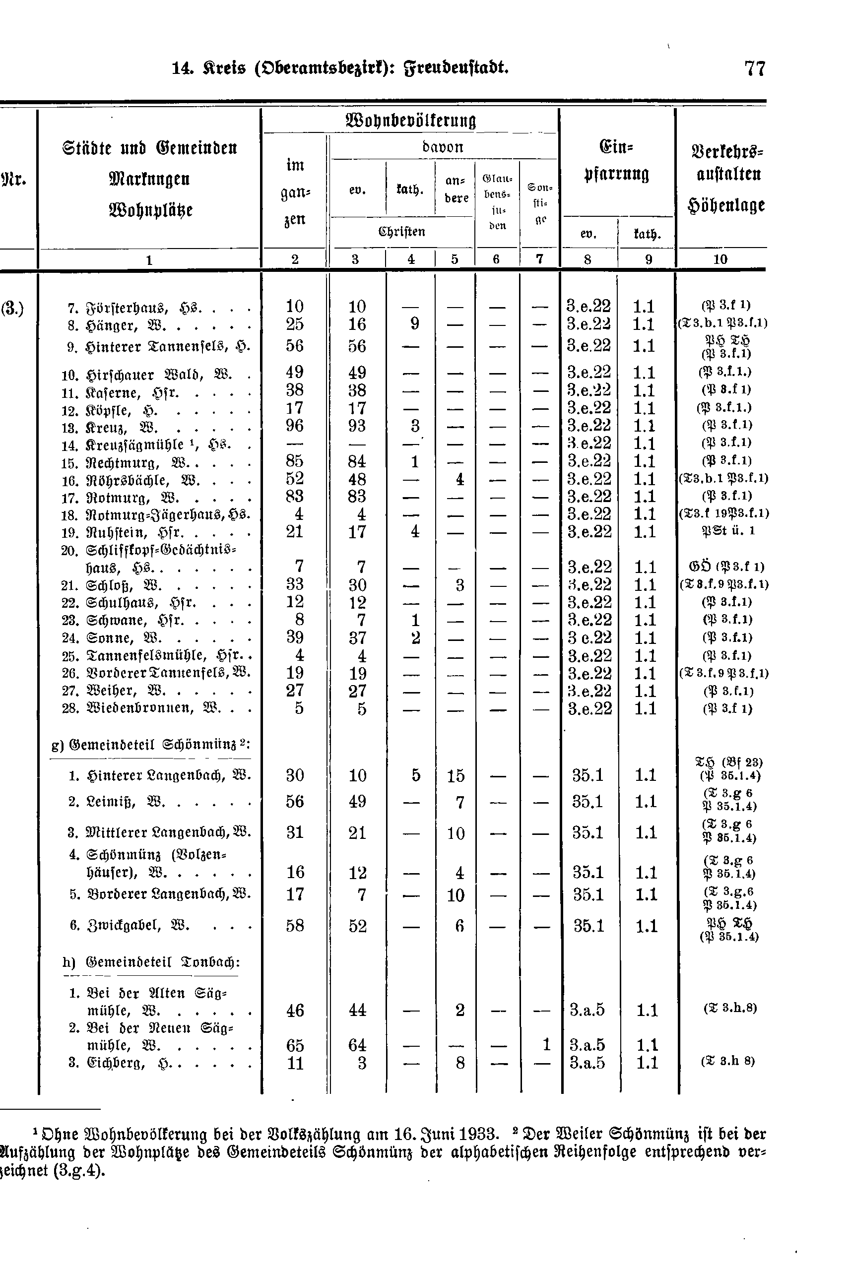 Wohnbevölkerung | Einpfarrung | Verkehrs-anstalten Höhenlage | ||||||