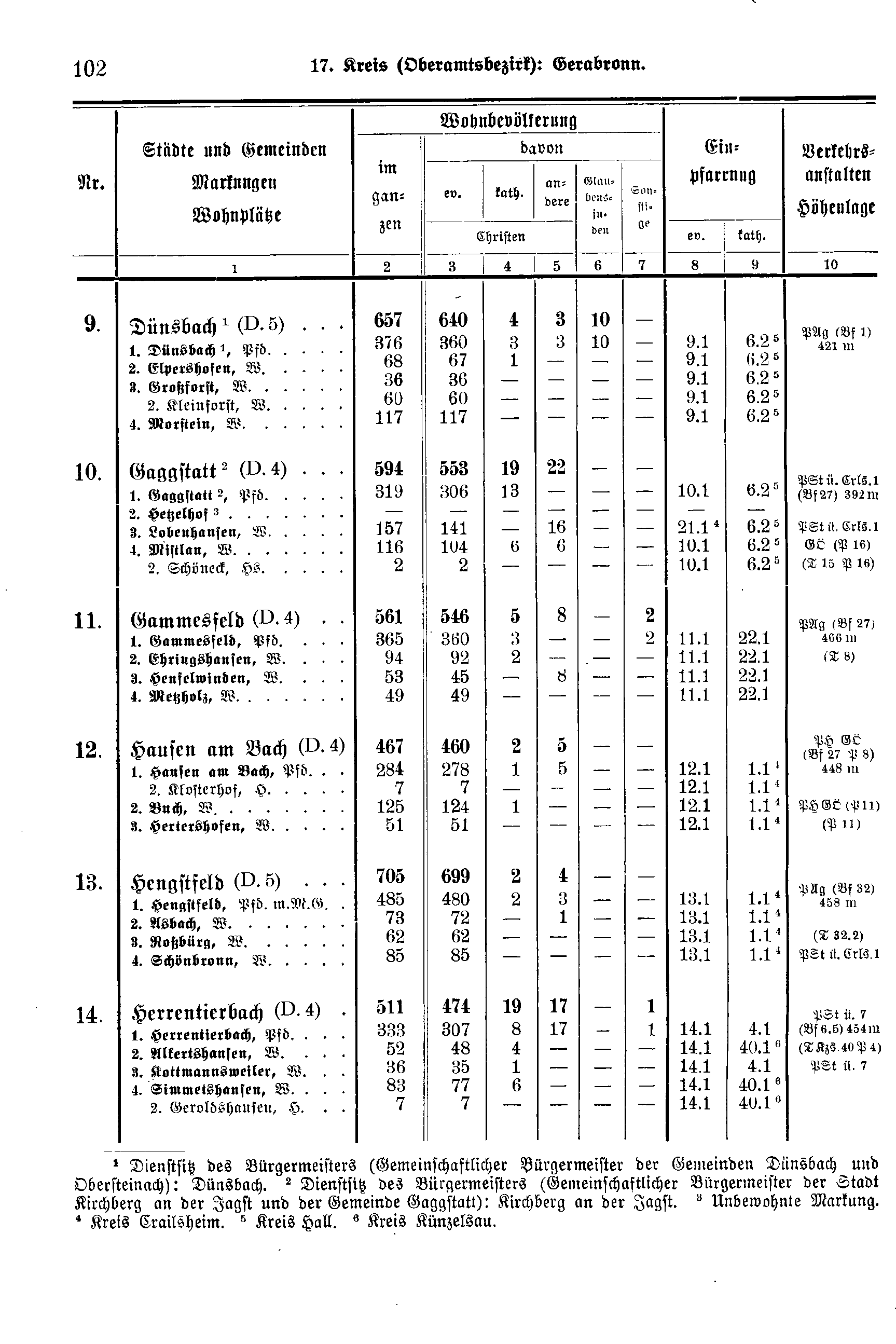 Wohnbevölkerung | Einpfarrung | Verkehrs-anstalten Höhenlage | ||||||