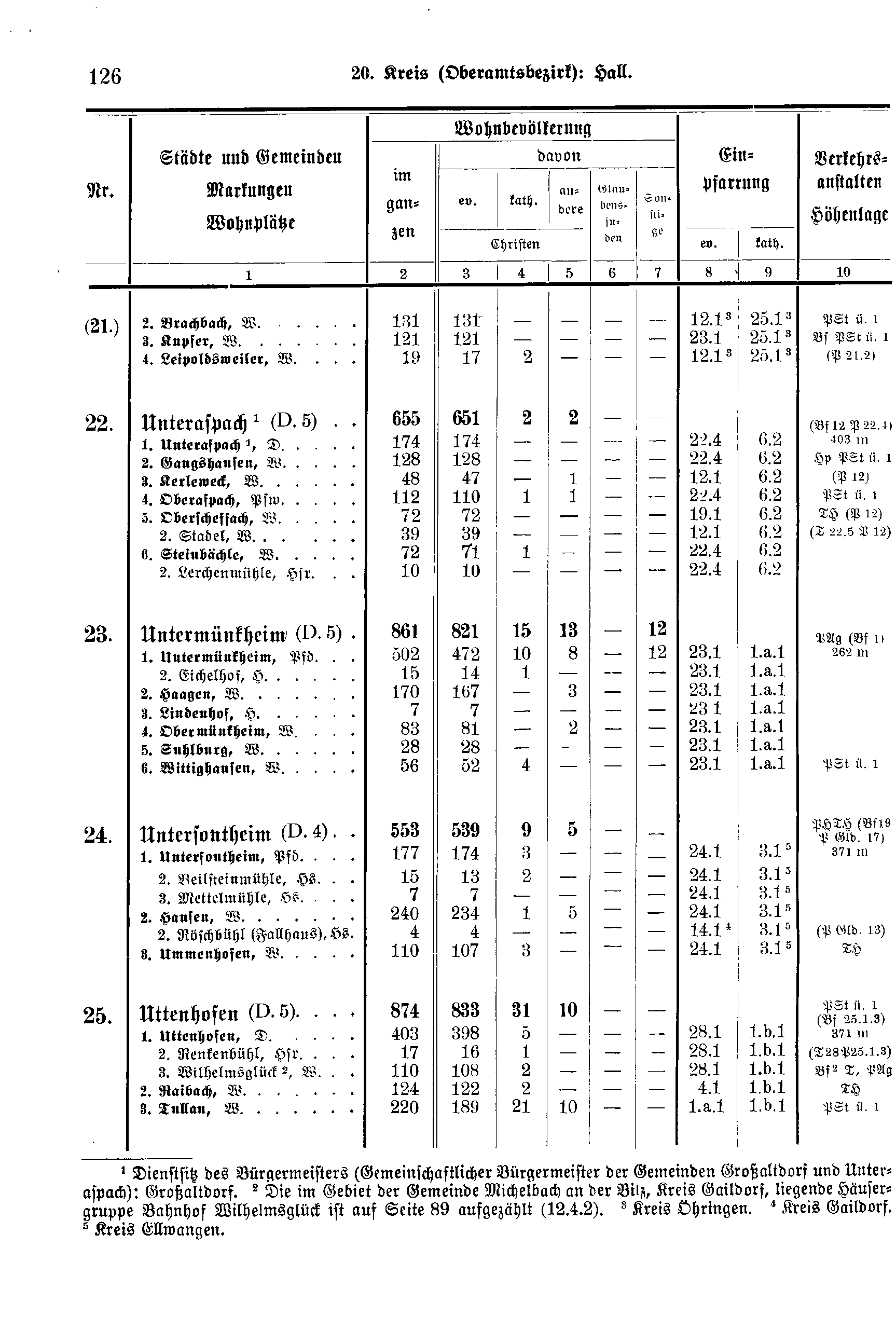 - ↑ 5,0 5,1 Die im Gebiet der Gemeinde Michelbach an der Bilz, Kreis Gaildorf, liegende Häusergruppe Bahnhof Wilhelmsglück ist auf Seite 89 aufgezählt (12.4.2).
